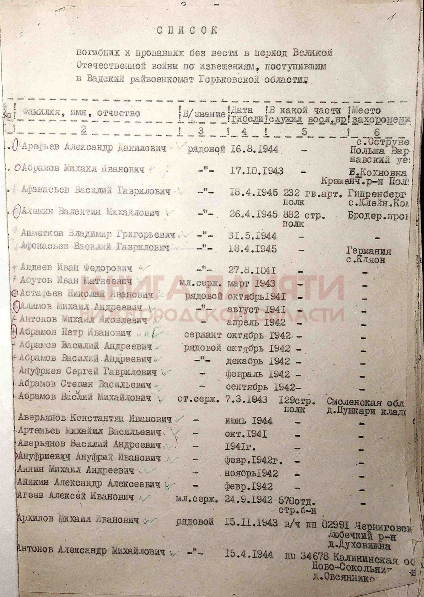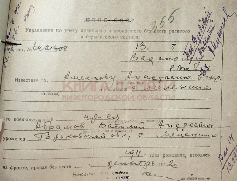 Пропал без вести в декабре 1942 г
