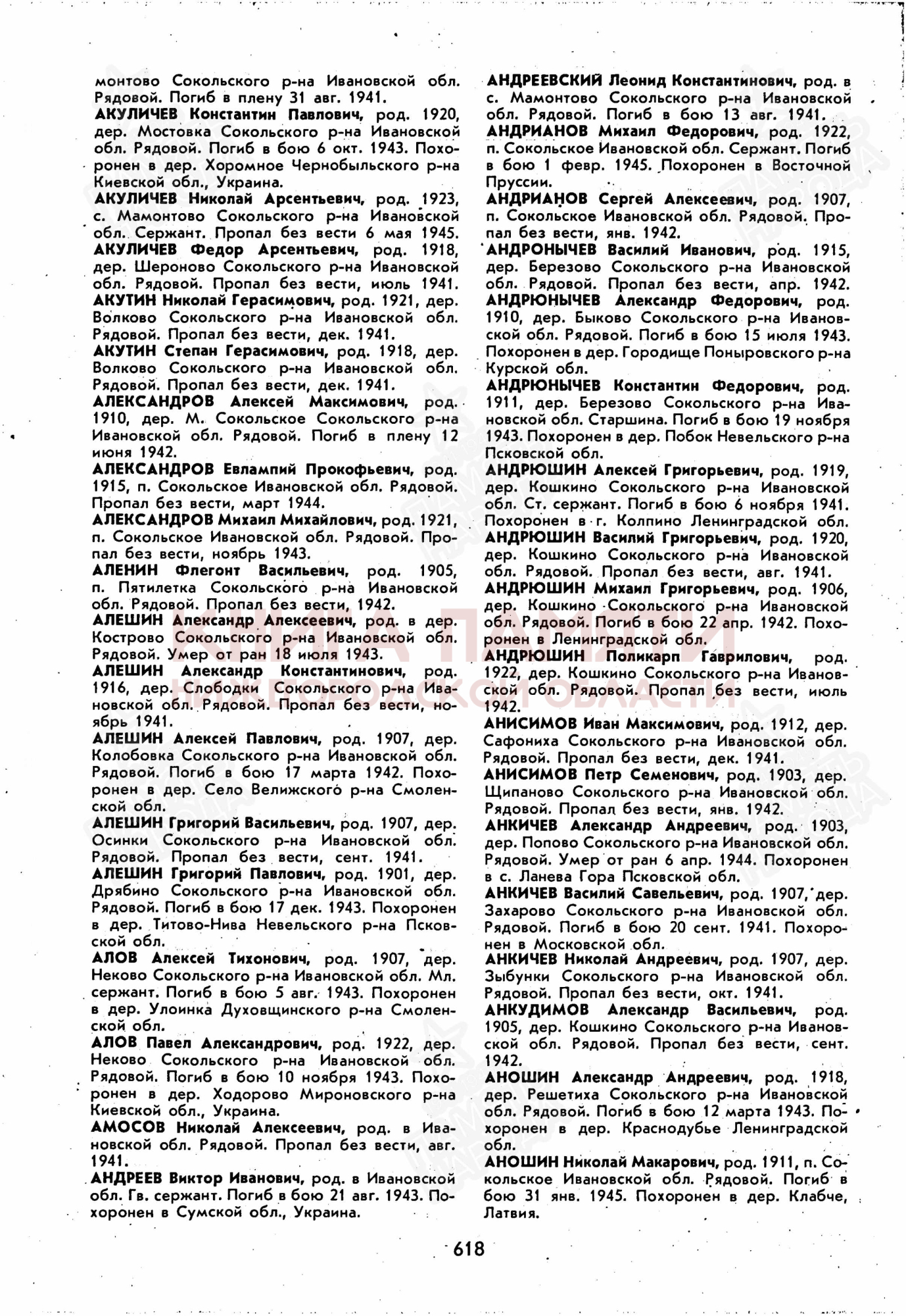 Наименование военкомата: Сокольский РВК, Ивановская обл., Сокольский р-н