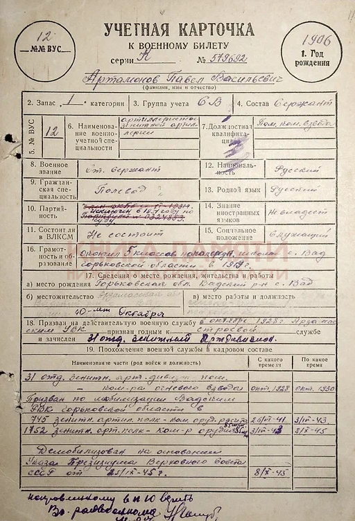 Демобилизовался 25.09.1945
