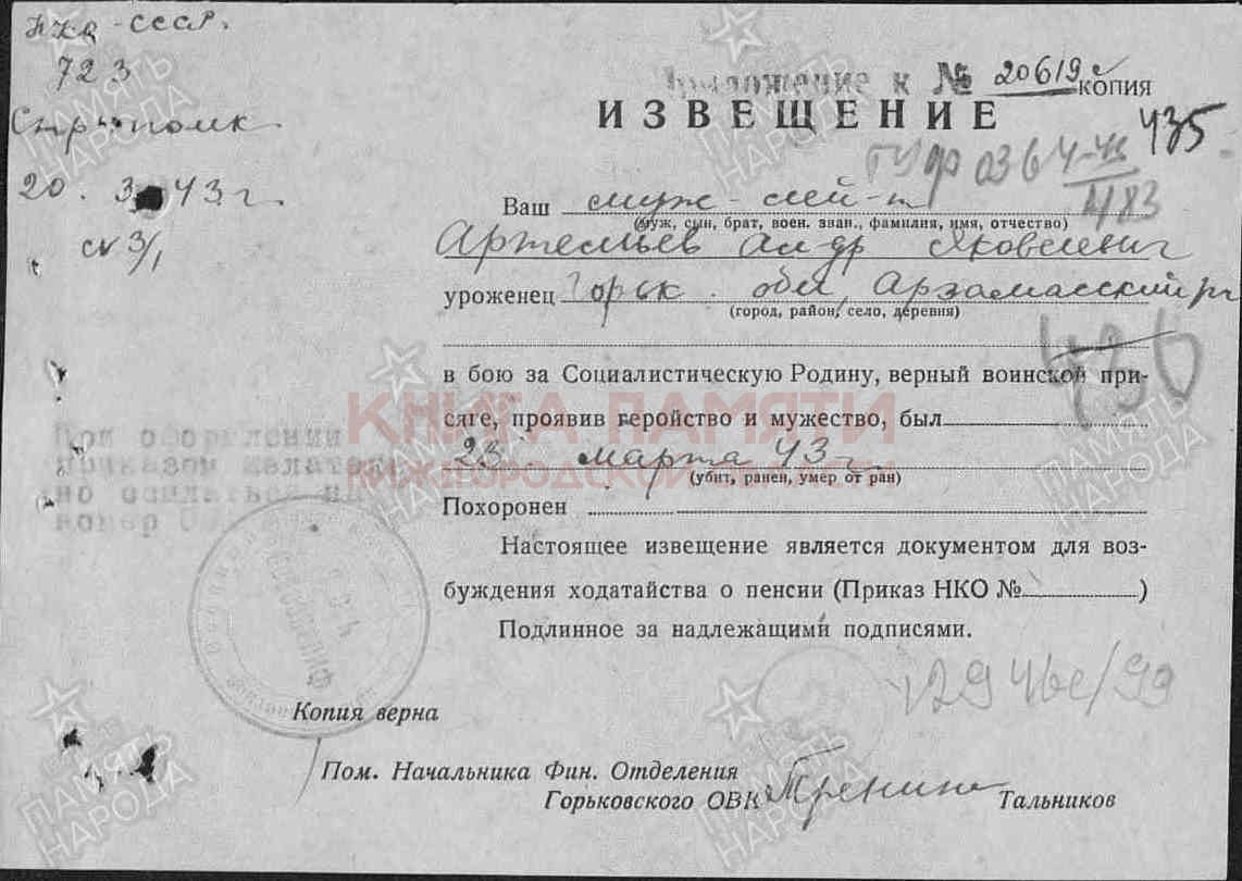 Убит 23.03.1943 г.