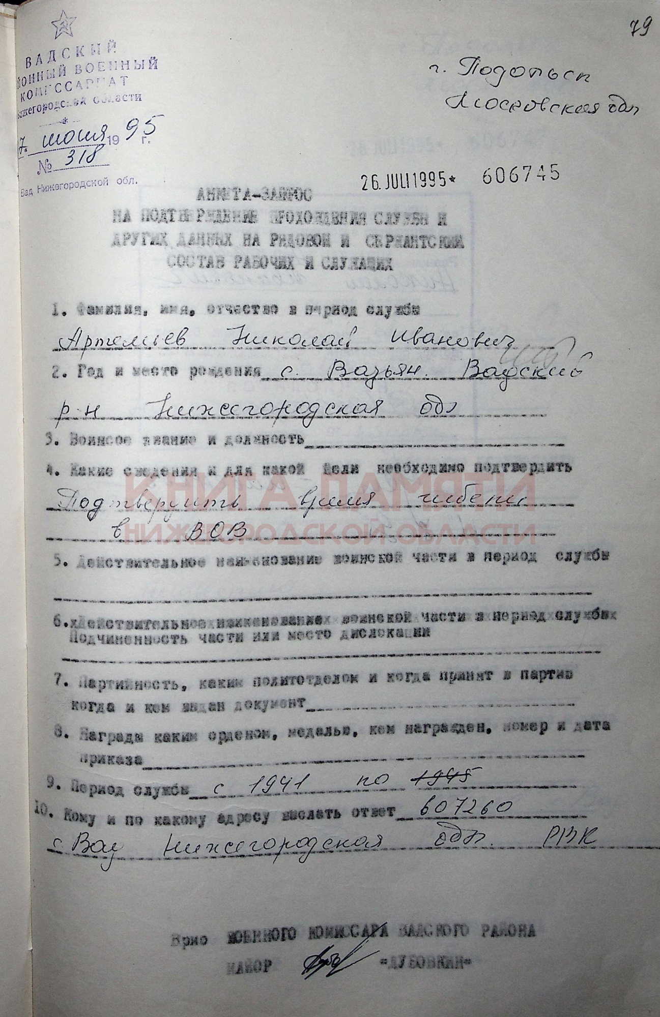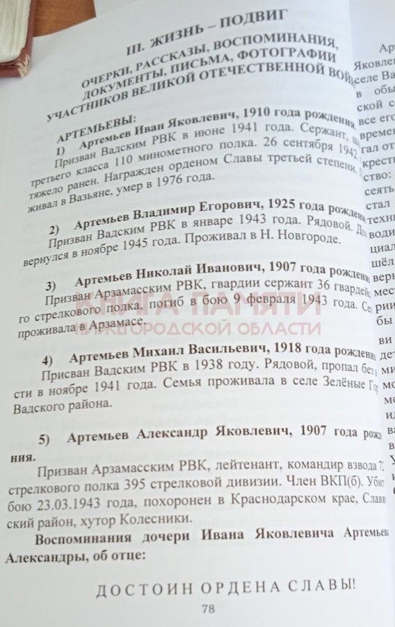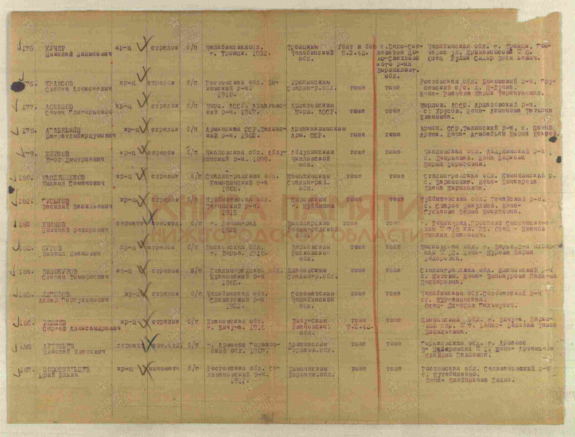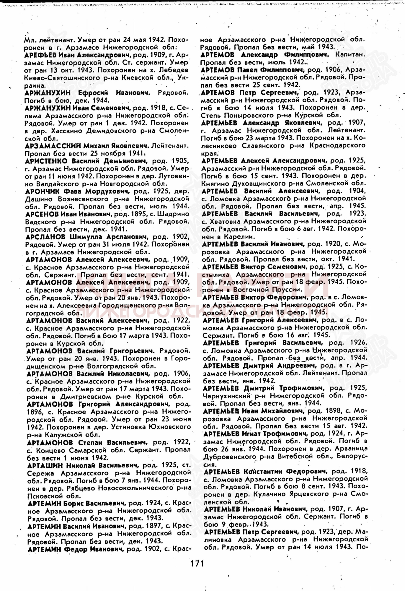 Горьковская обл., Вадский р-н, с. Вазьян; Нижегородская обл., Арзамасский р-н, г. Арзамас