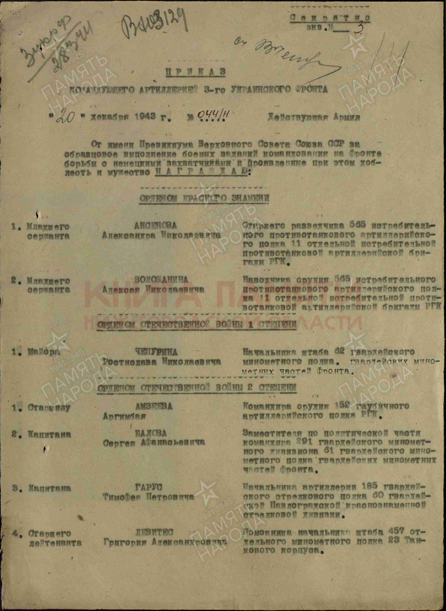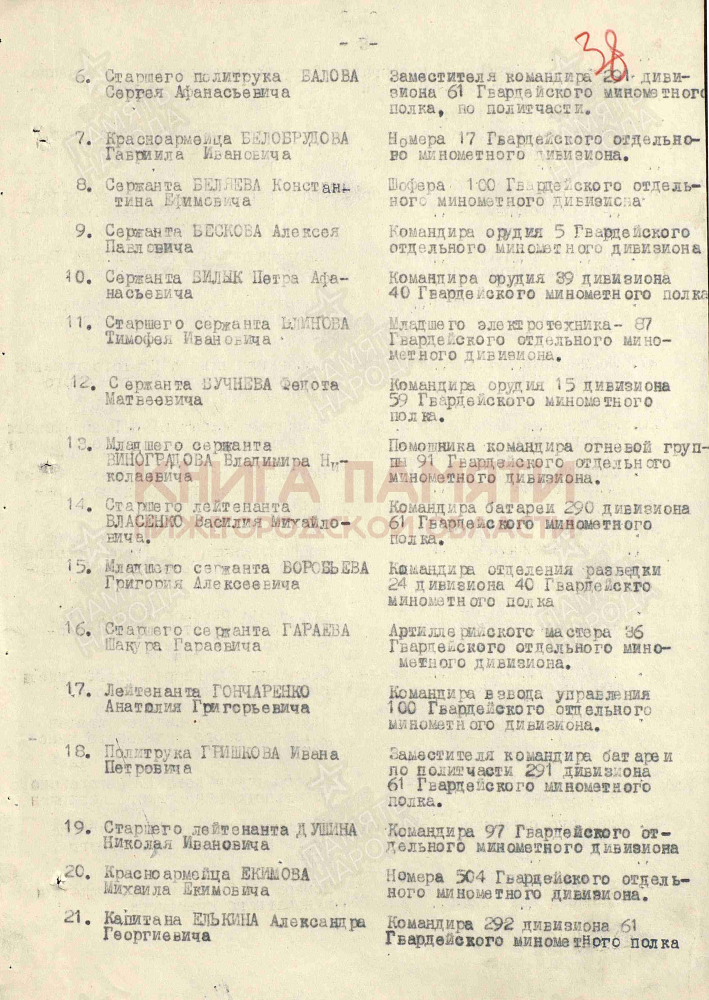 291 гвардейского минометного дивизиона 61 гвардейского минометного полка гвардейских минометных частей фронта; 301 гвардейский минометный полк