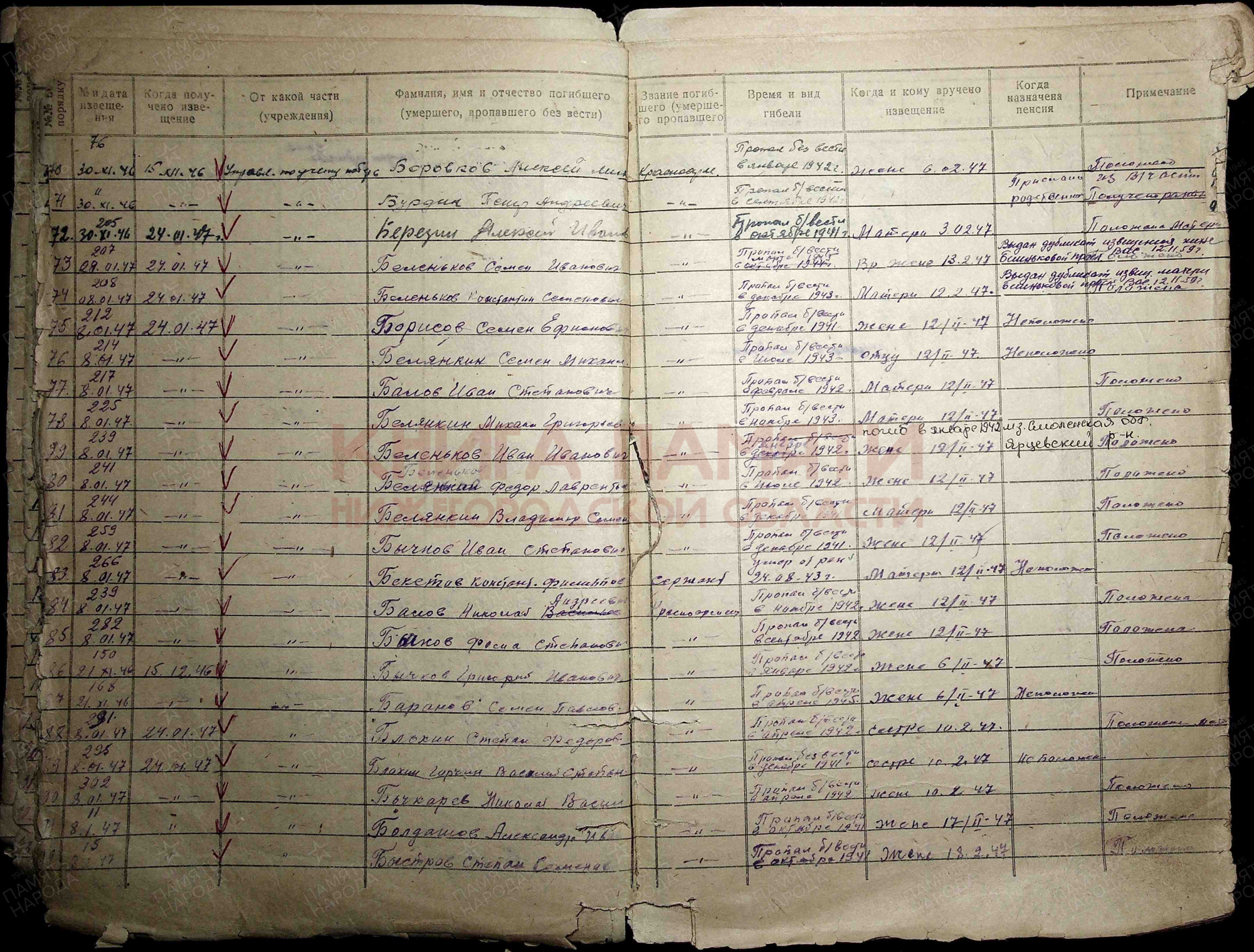 Ошибочно признан пропавшим без вести в апреле 1945 г. Получил ранение, дата выбытия из ЭГ 10.07.1945 г.