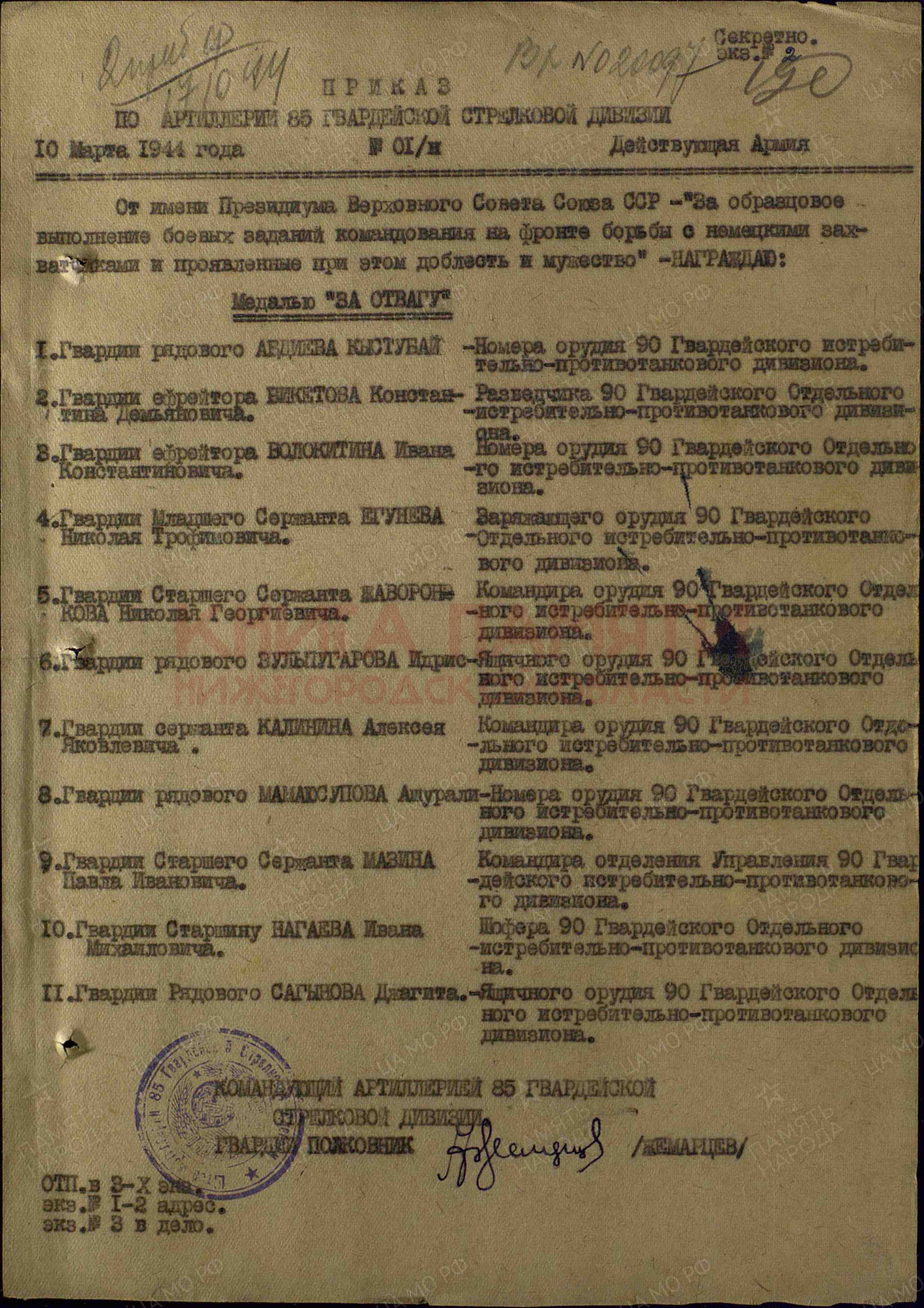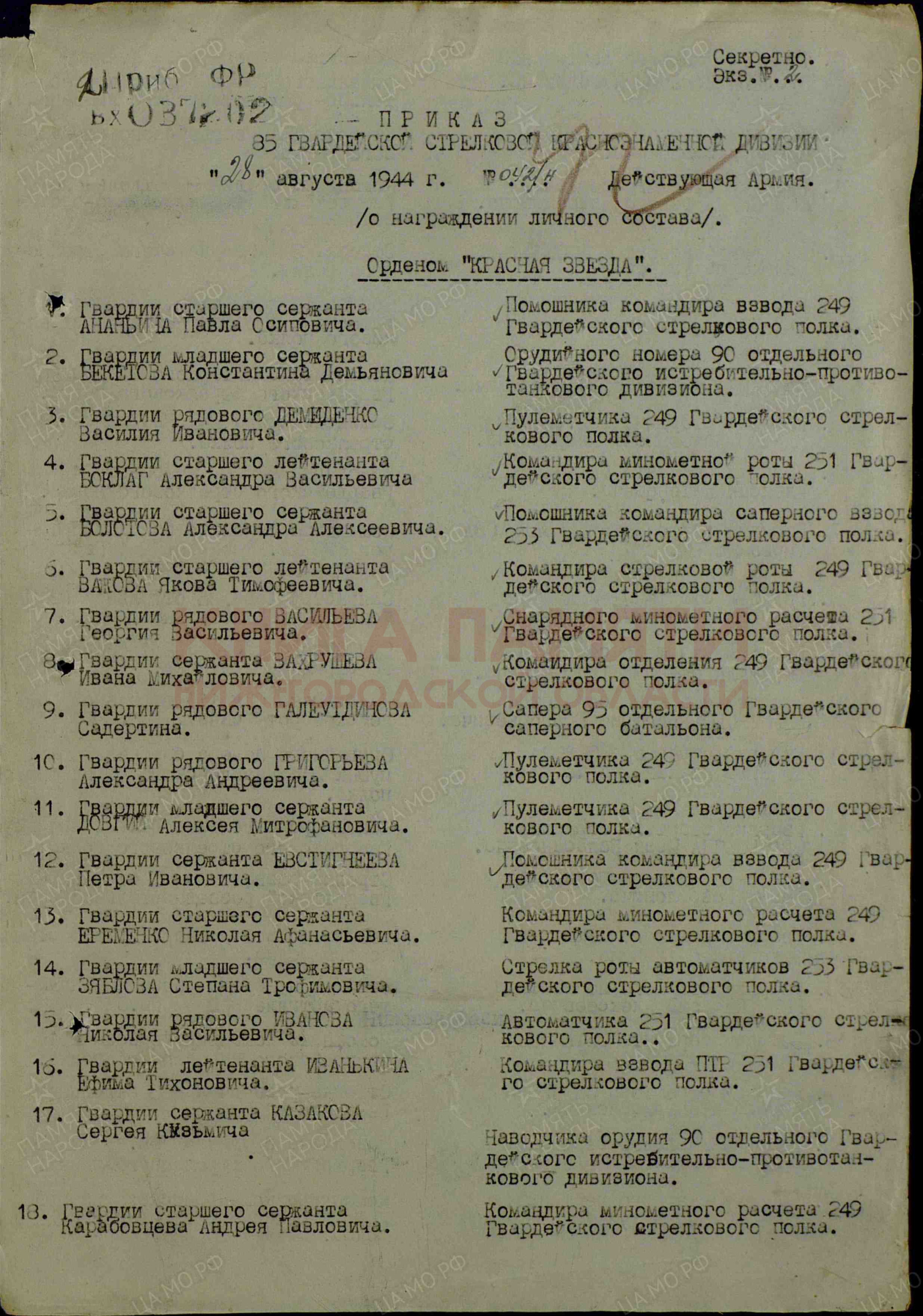 208 артиллерийский полк; 10 армия; 30 истребительная противоартиллерийская дивизия; 85 гвардейская стрелковая дивизия; 253 гвардейский стрелковый полк; 90 гвардейский отдельный истребительно-противотанковый дивизион;