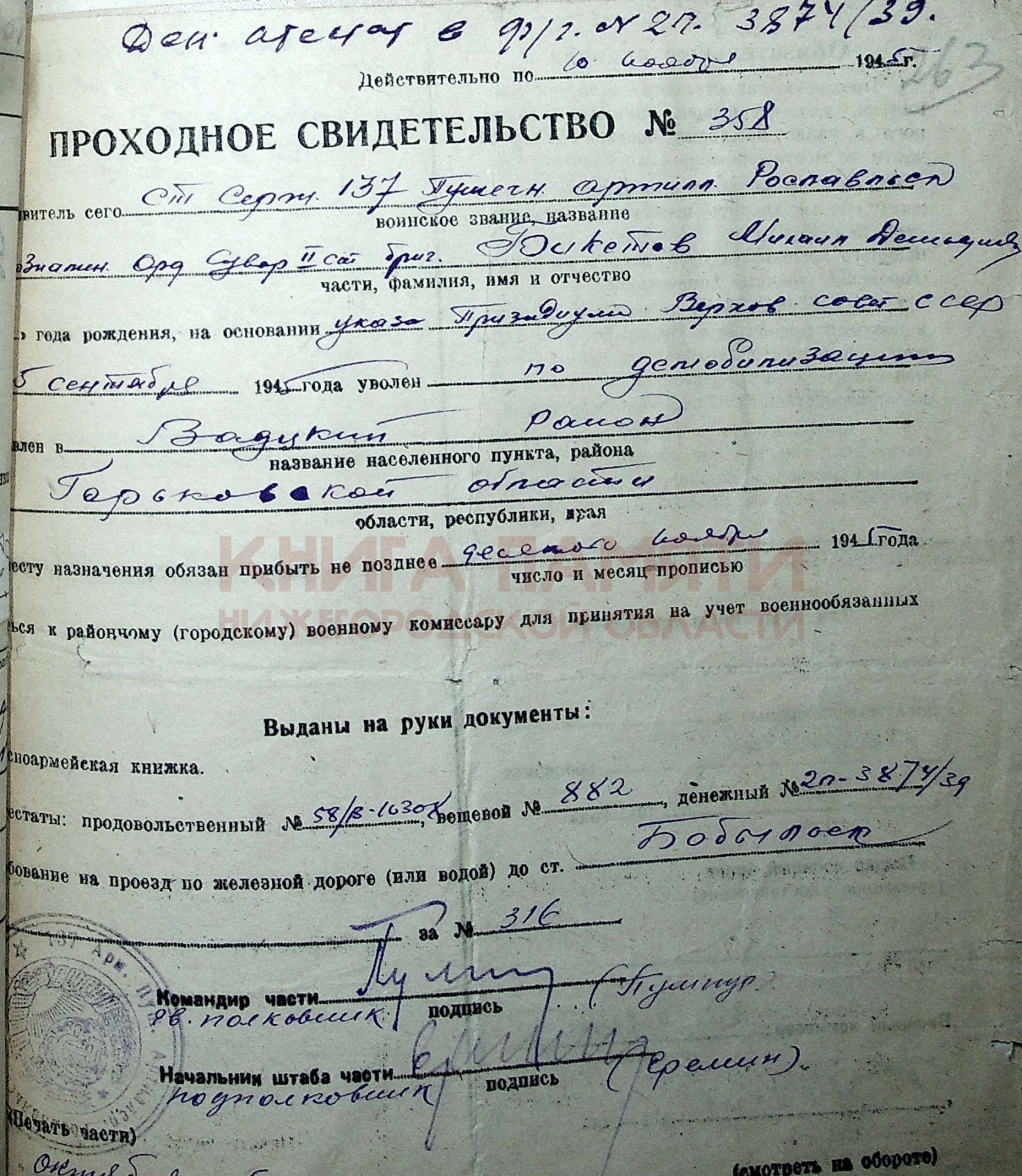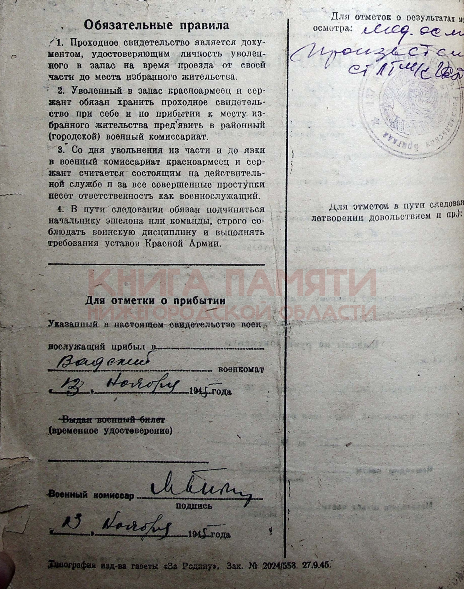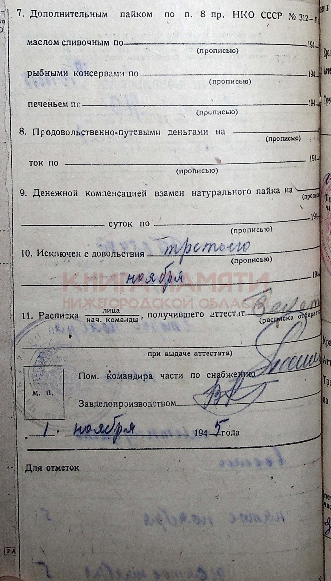 30.10.1945 демобилизован