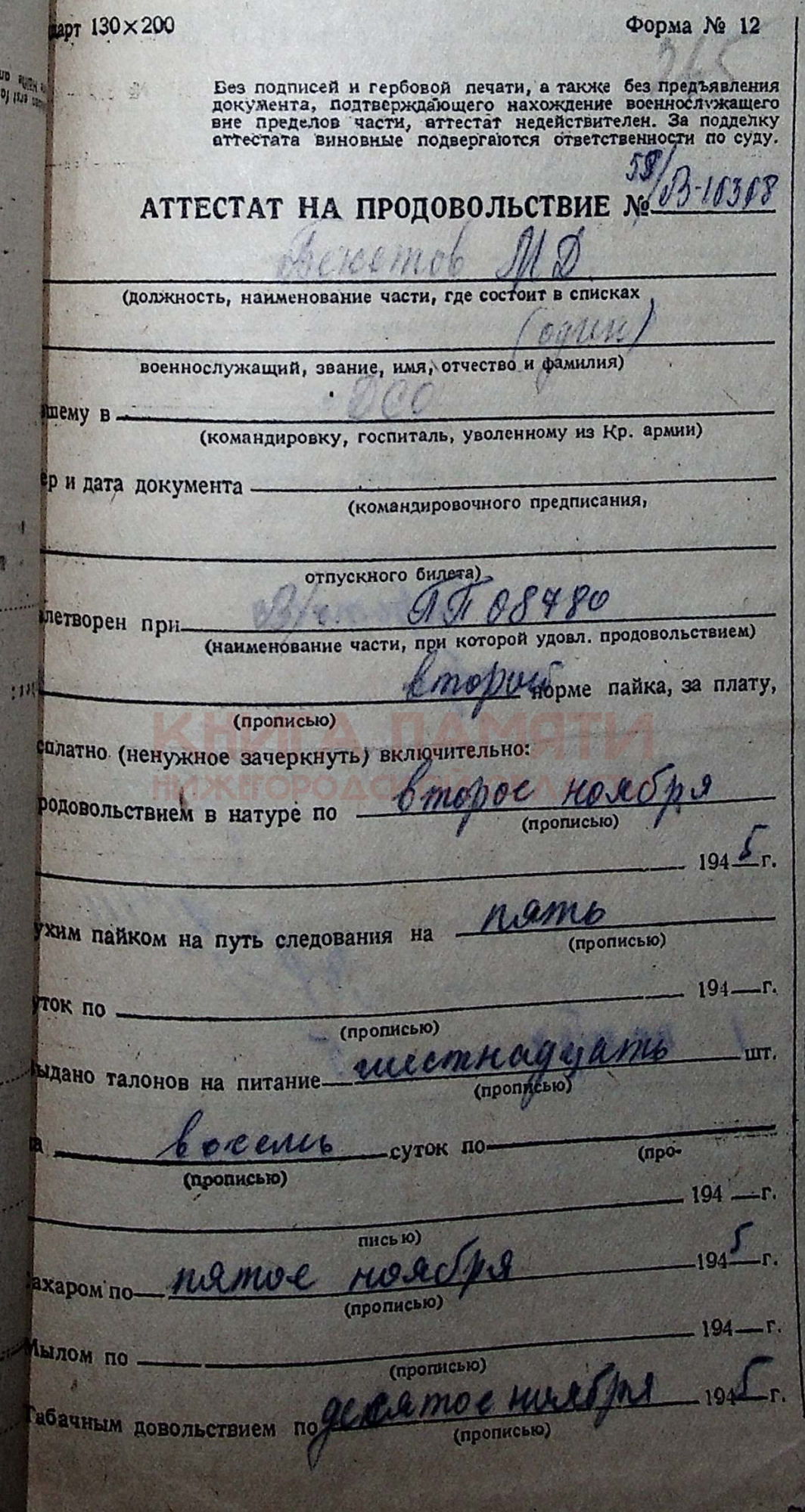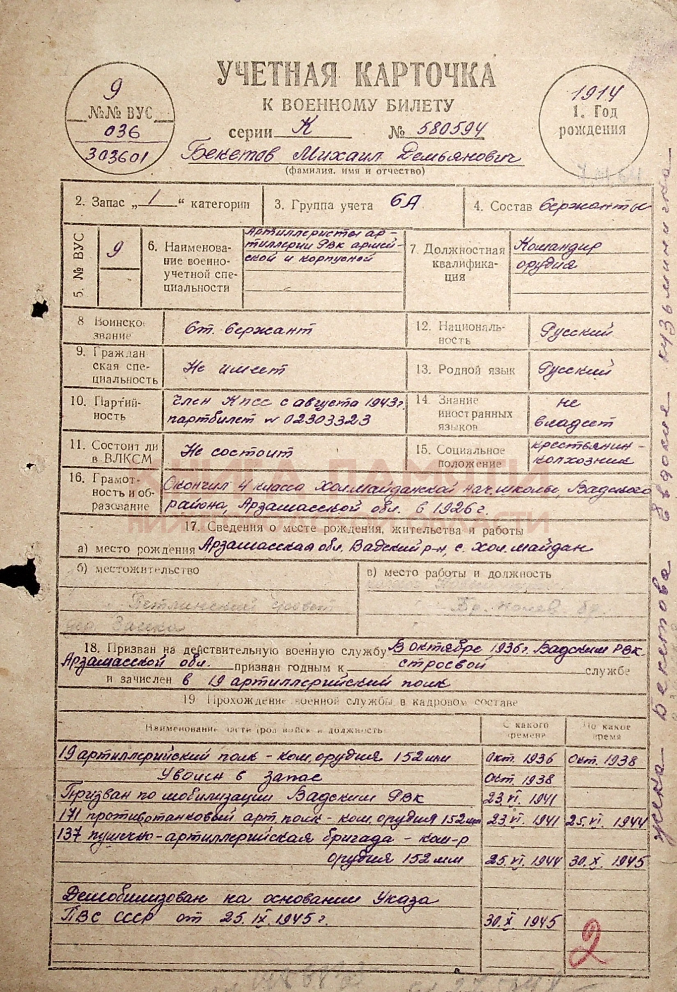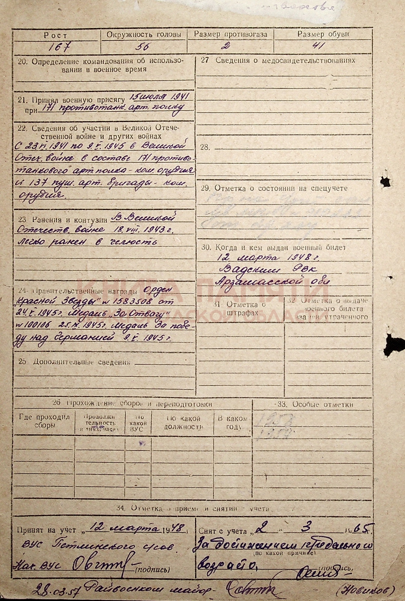 30.10.1945 демобилизован