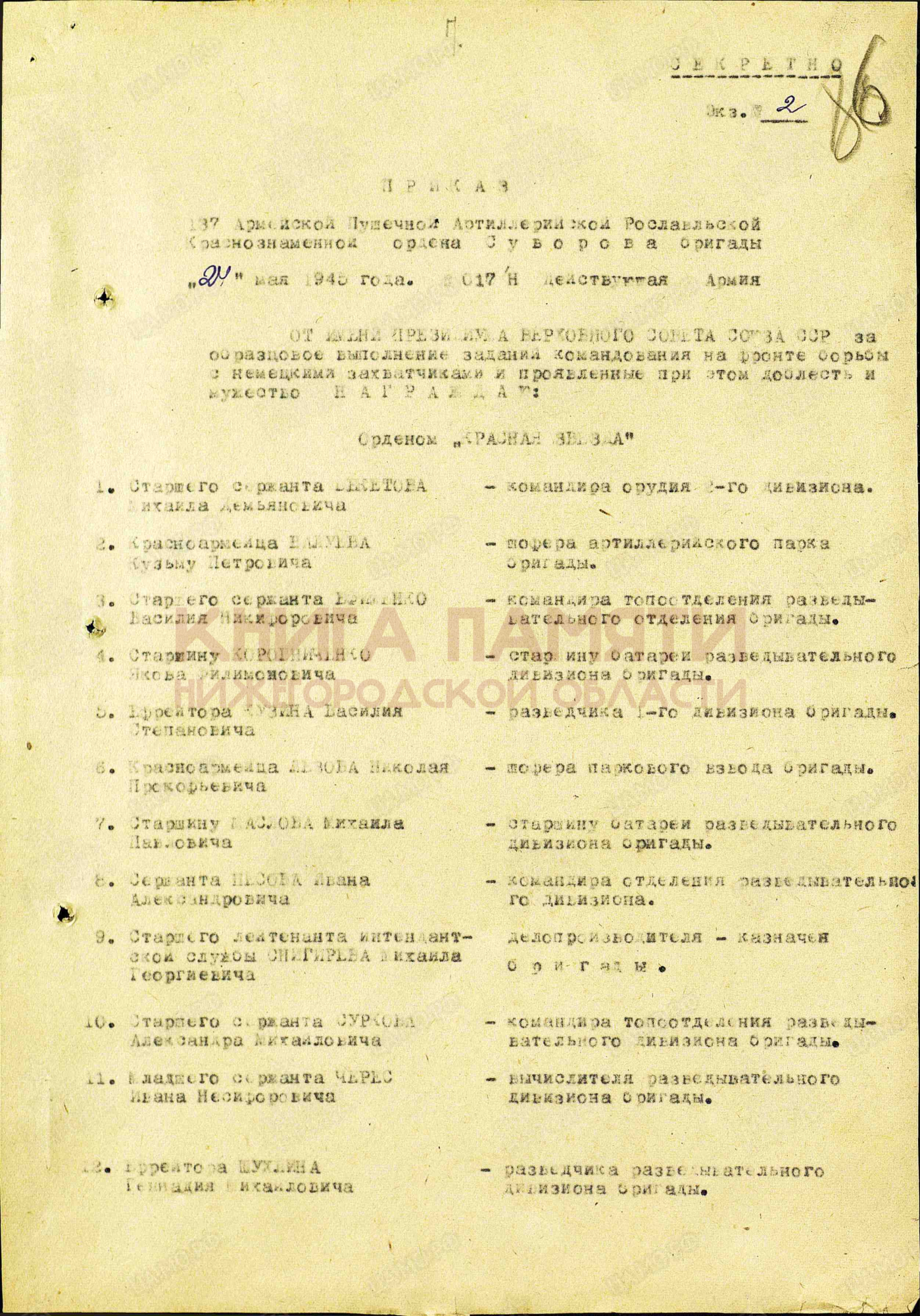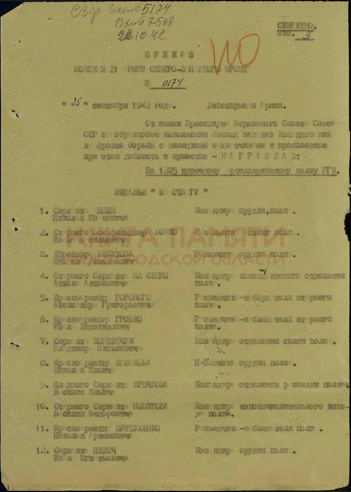 171 противотанковый артиллерийский полк; 137 пушечно-артиллерийская бригада; 1235 армейский пушечный артиллерийский полк;
