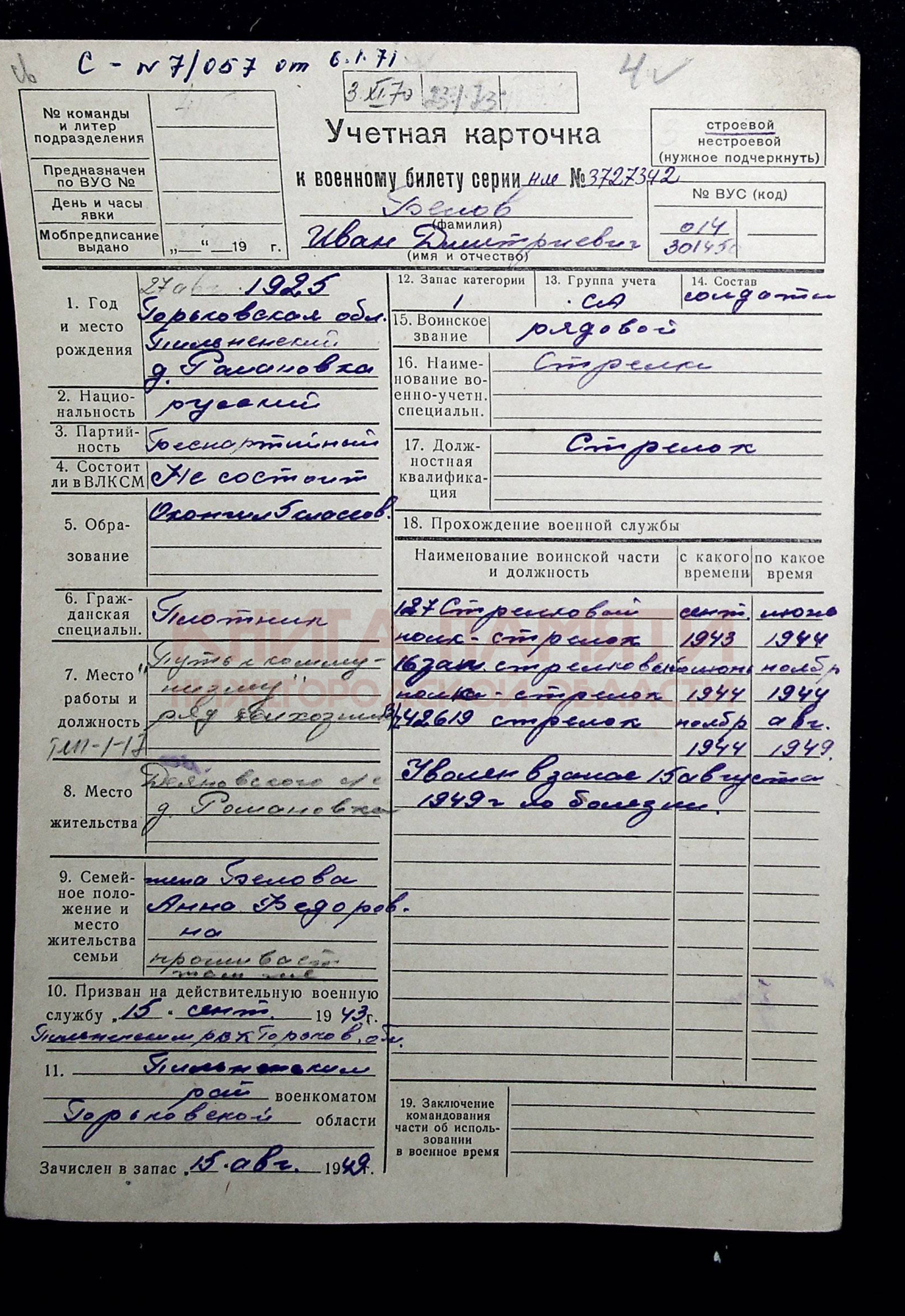 127 стр полк с сентября 1943 по июнь 1944, 16 стр зап. полк с июня 1944 по ноябрь 1944, в/ч 42619 - стрелок с ноября 1944 по август 1949