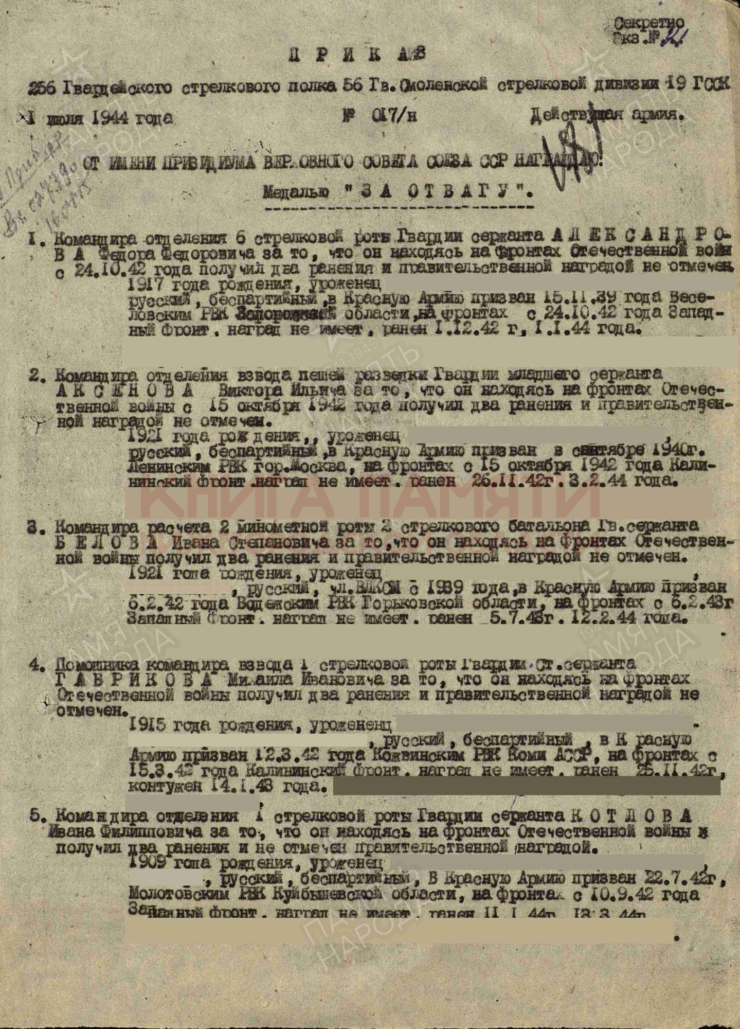 Был ранен 05.07.1943 г. и 12.02.1944 г.