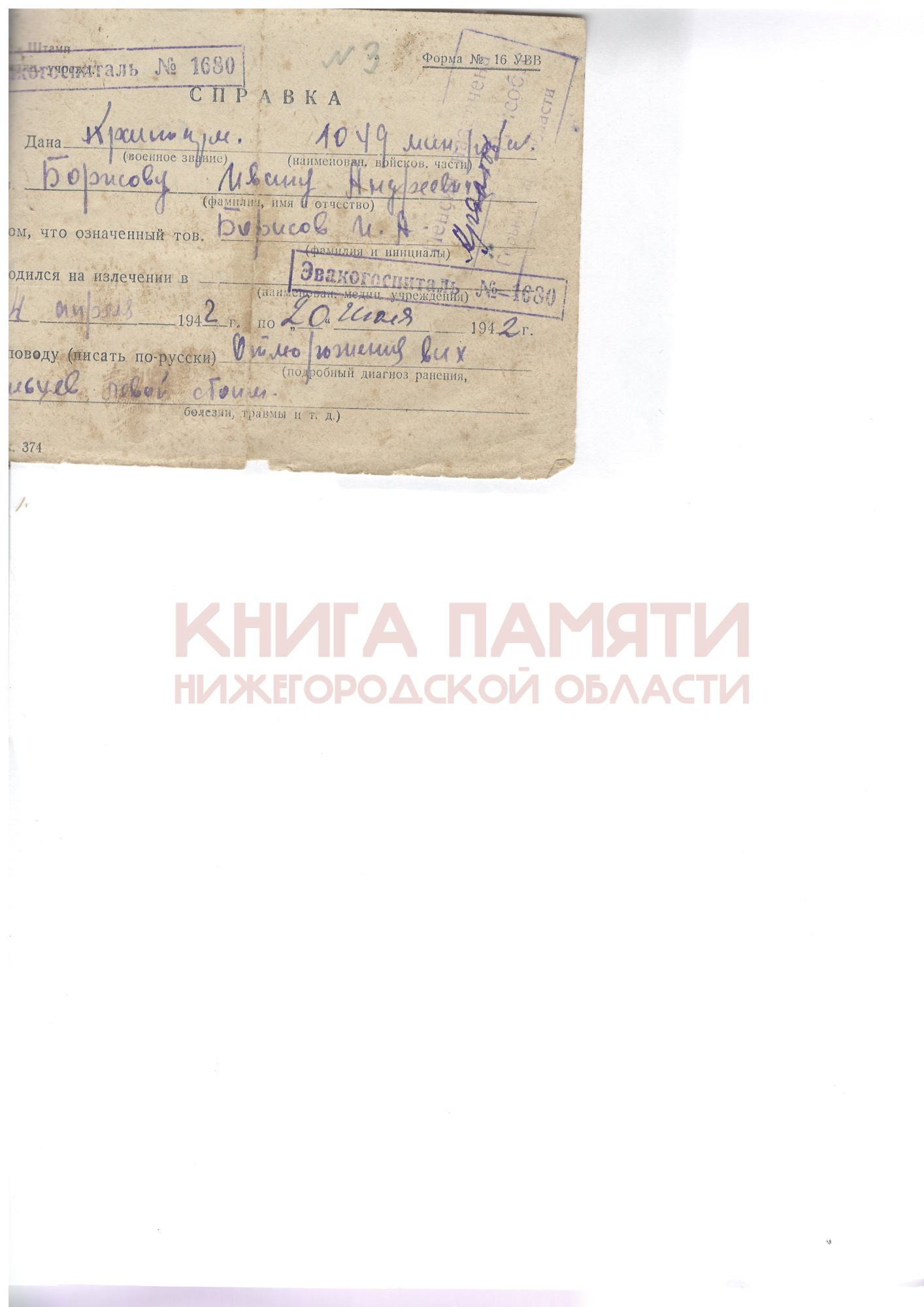 Ивалид ВОВ 3 группы, был ранен находился на излечении в ЭГ 1680 с 04.04.1942г. По 20.07.1942г., признан негодным к несению военной службы, демобилизован домой. Проживал в д.Колтоменья Ардатовского района . Умер 31.03.1972г.