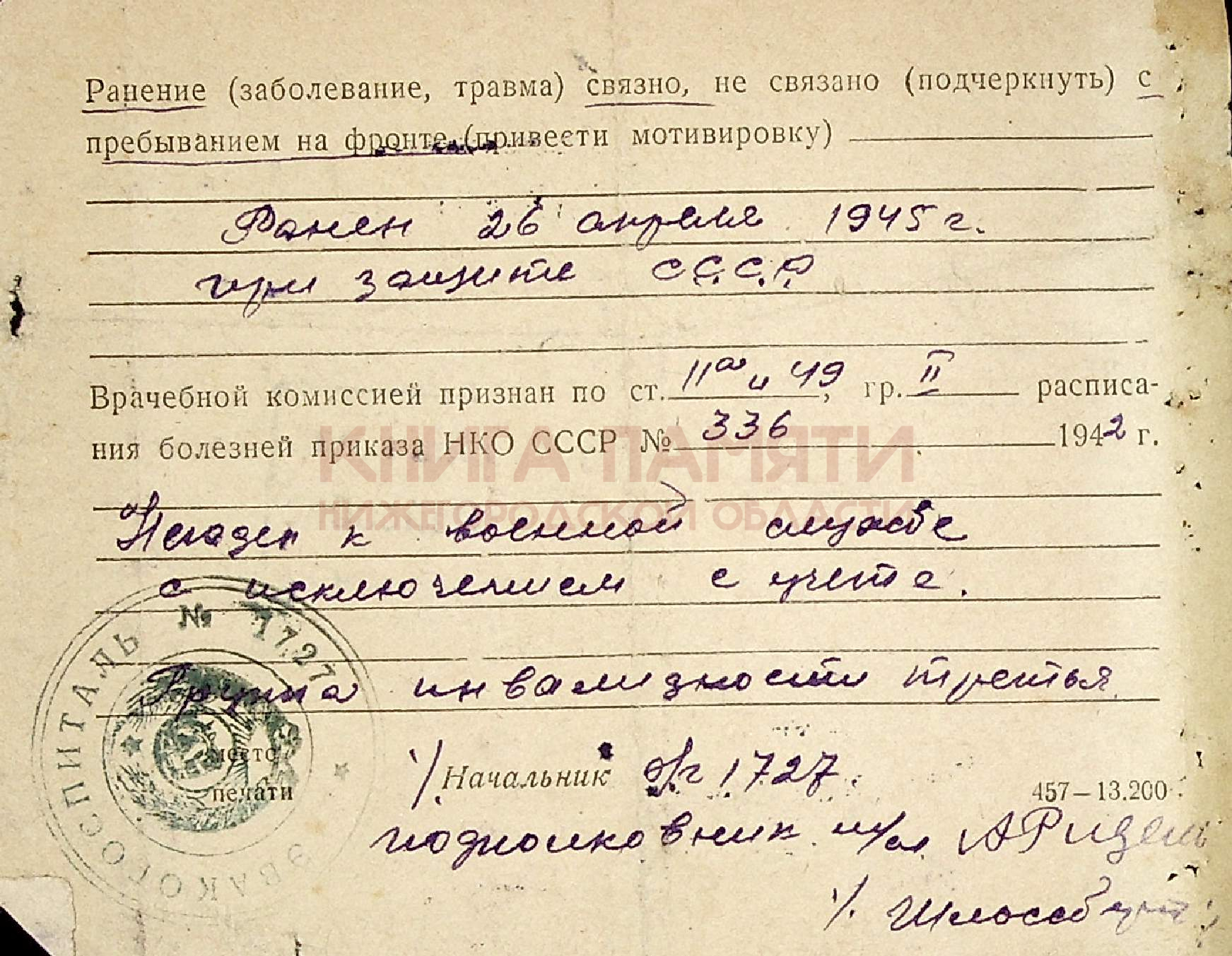 Принимал участие в битве на Курской дуге в танковом сражении под Прохоровкой, где и был ранен.