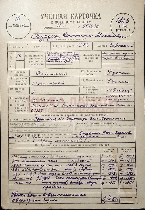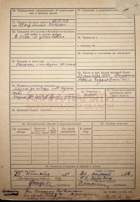 Уволен в запас 9.10.1951