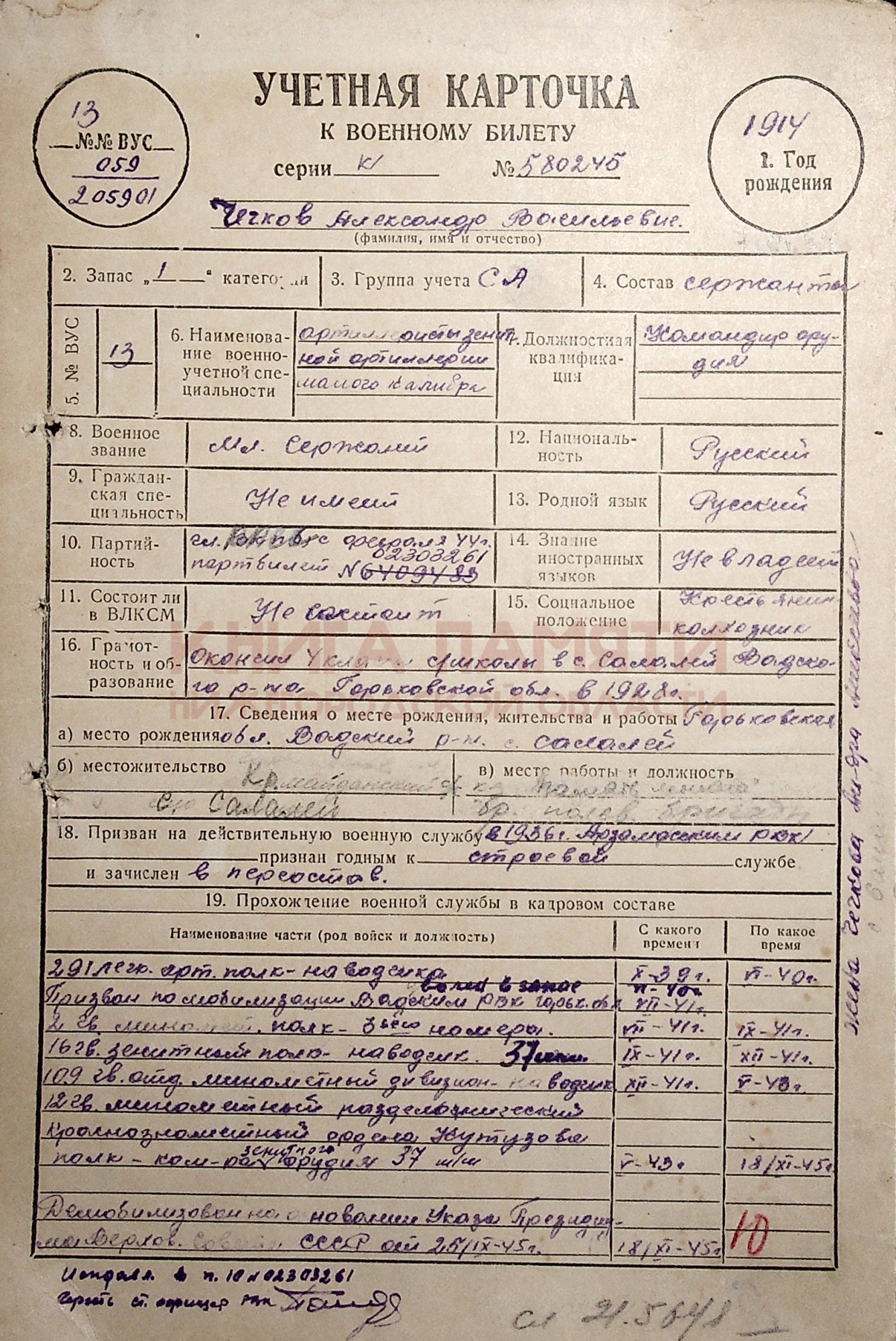 Демобилизовался в 1945 году