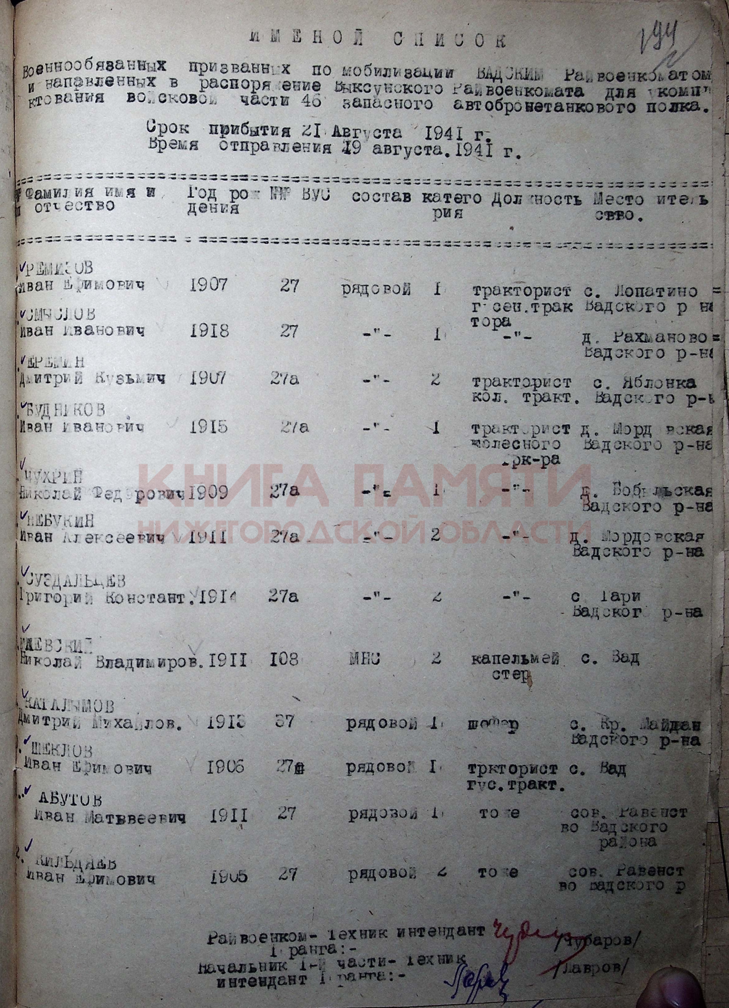 Вадский РВК Горьковской обл