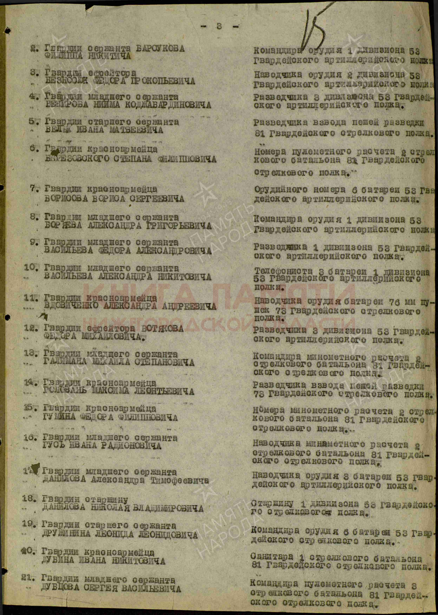 53 гвардейский артиллерийский полк 25 гвардейской стрелковой дивизии; 1057 стрелковый полк 297 стрелковой дивизии (II)
