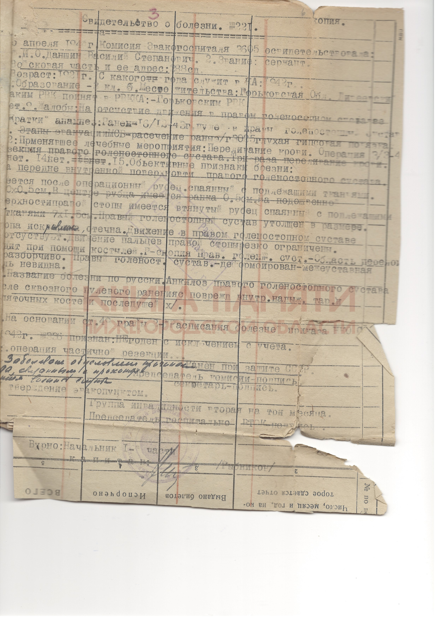 Инвалид ВОВ 3 группы, был ранен 16.12.1943г. (пулевое ранение в правый голеностопный сустав). После излечения в Эвакогоспитале 3605 был демобилизован домой. Проживал в с. Б.Череватово, Дивеевского района. Умер 29.01.1976 г.