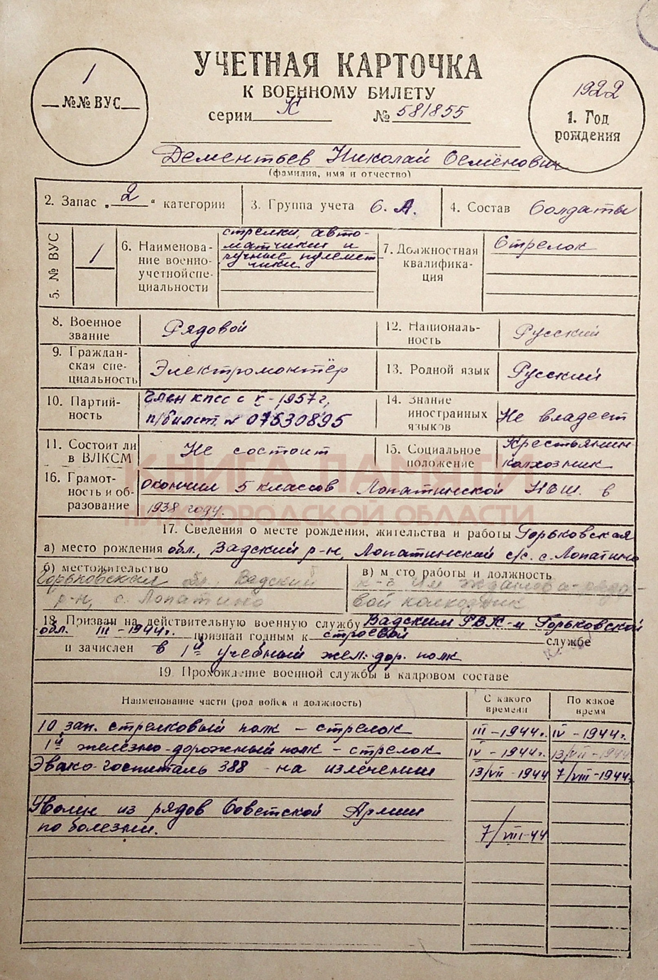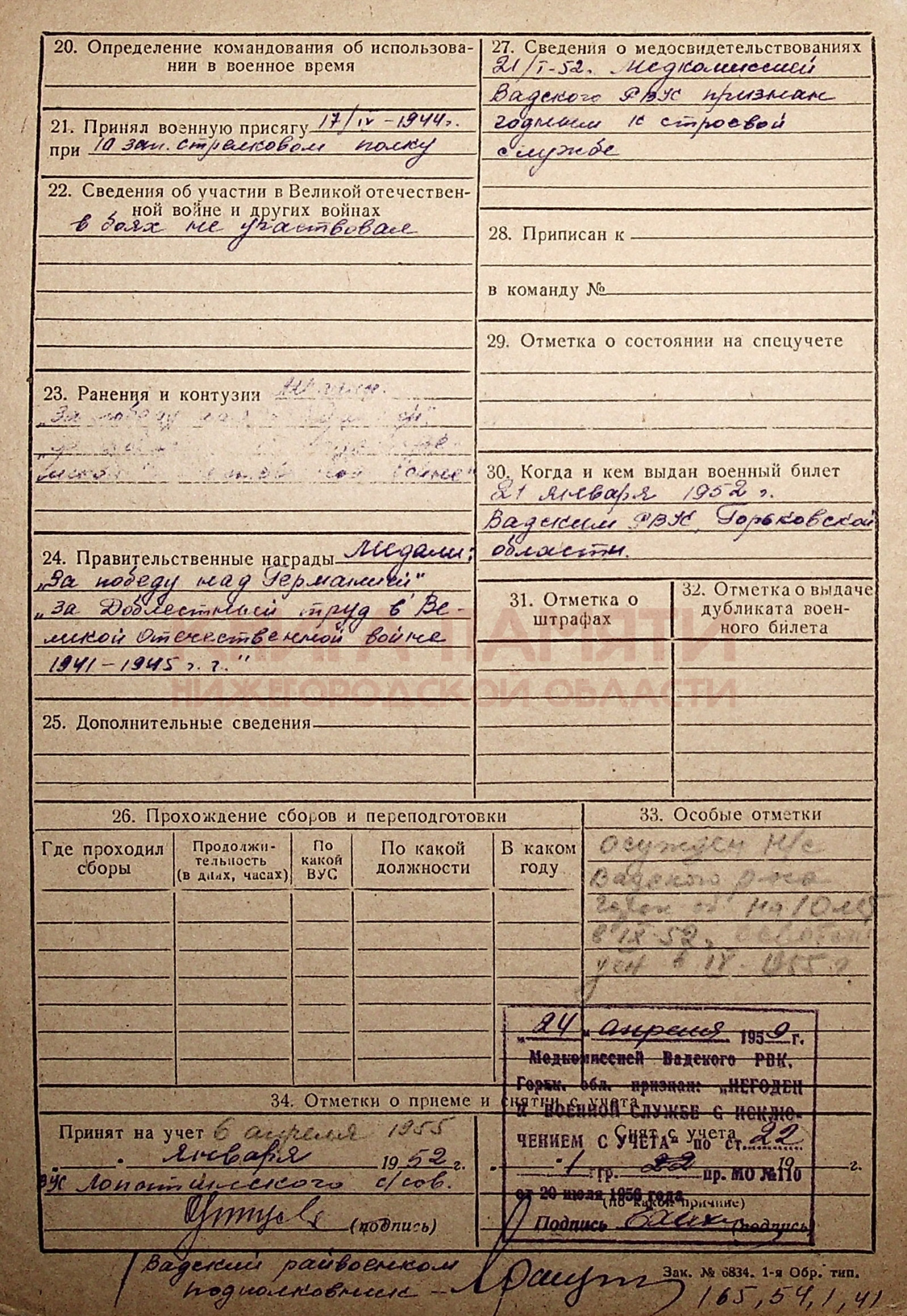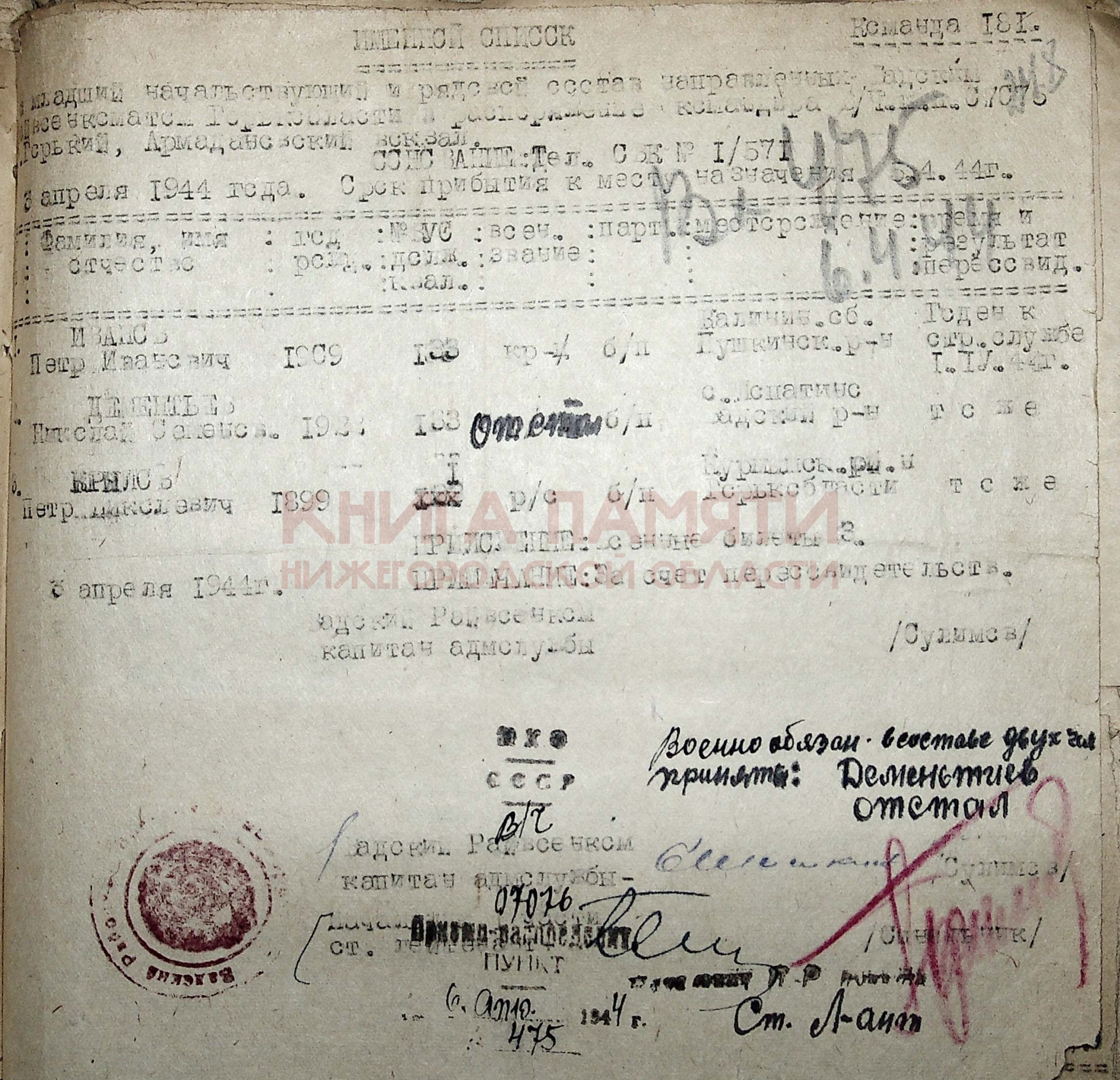 Уволен по ранению в 1944 г. Умер в 1965 г.