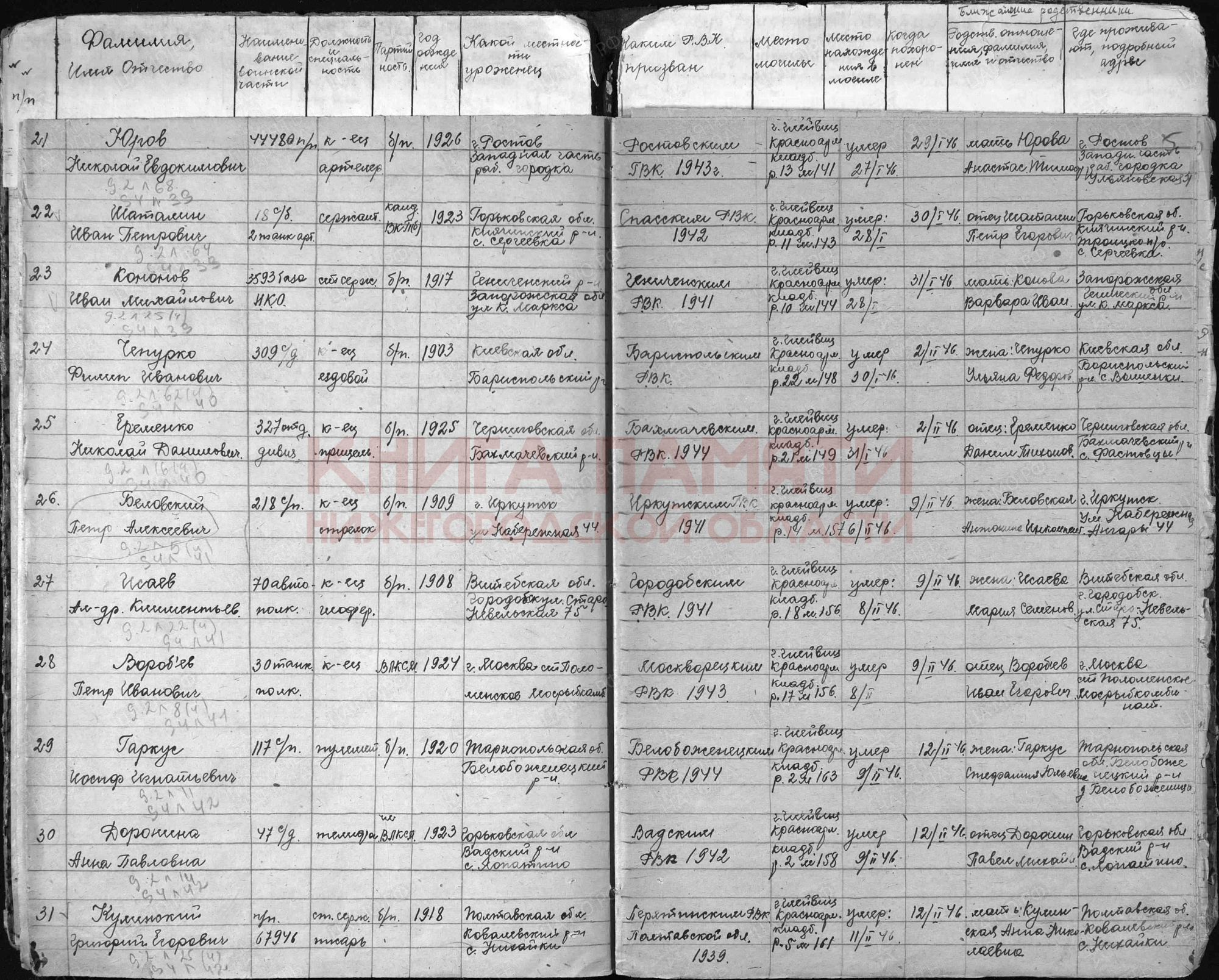 место захоронения:Польша, г. Глейвиц (он же Гливице), красноармейское кладбище, ряд 2, могила № 158 ; в г. Глей- вице, Германия