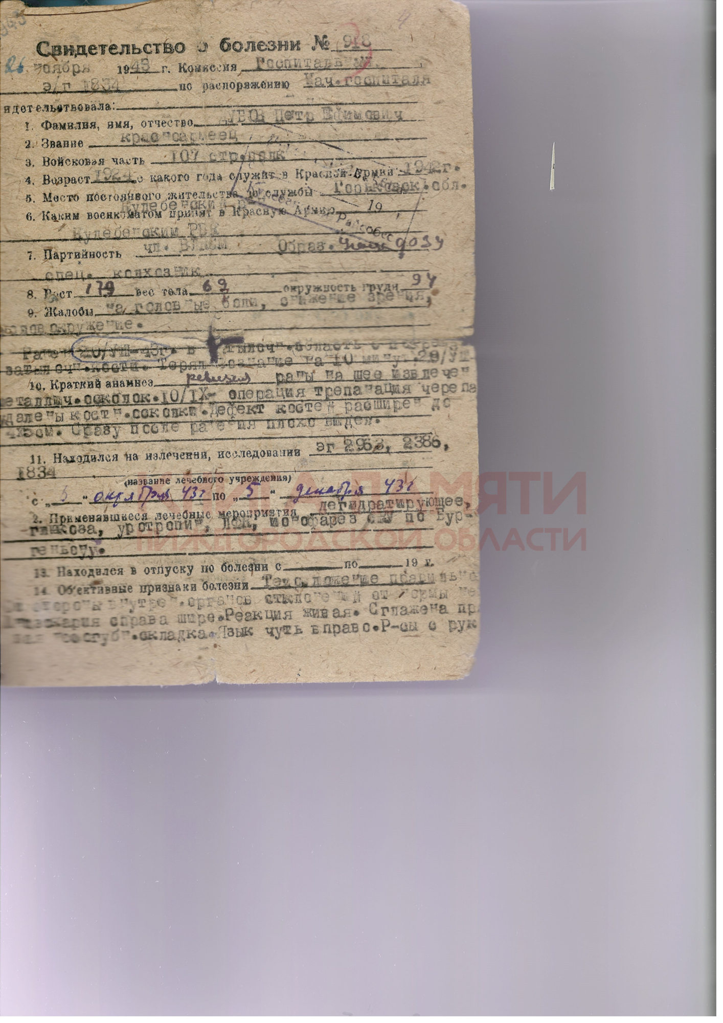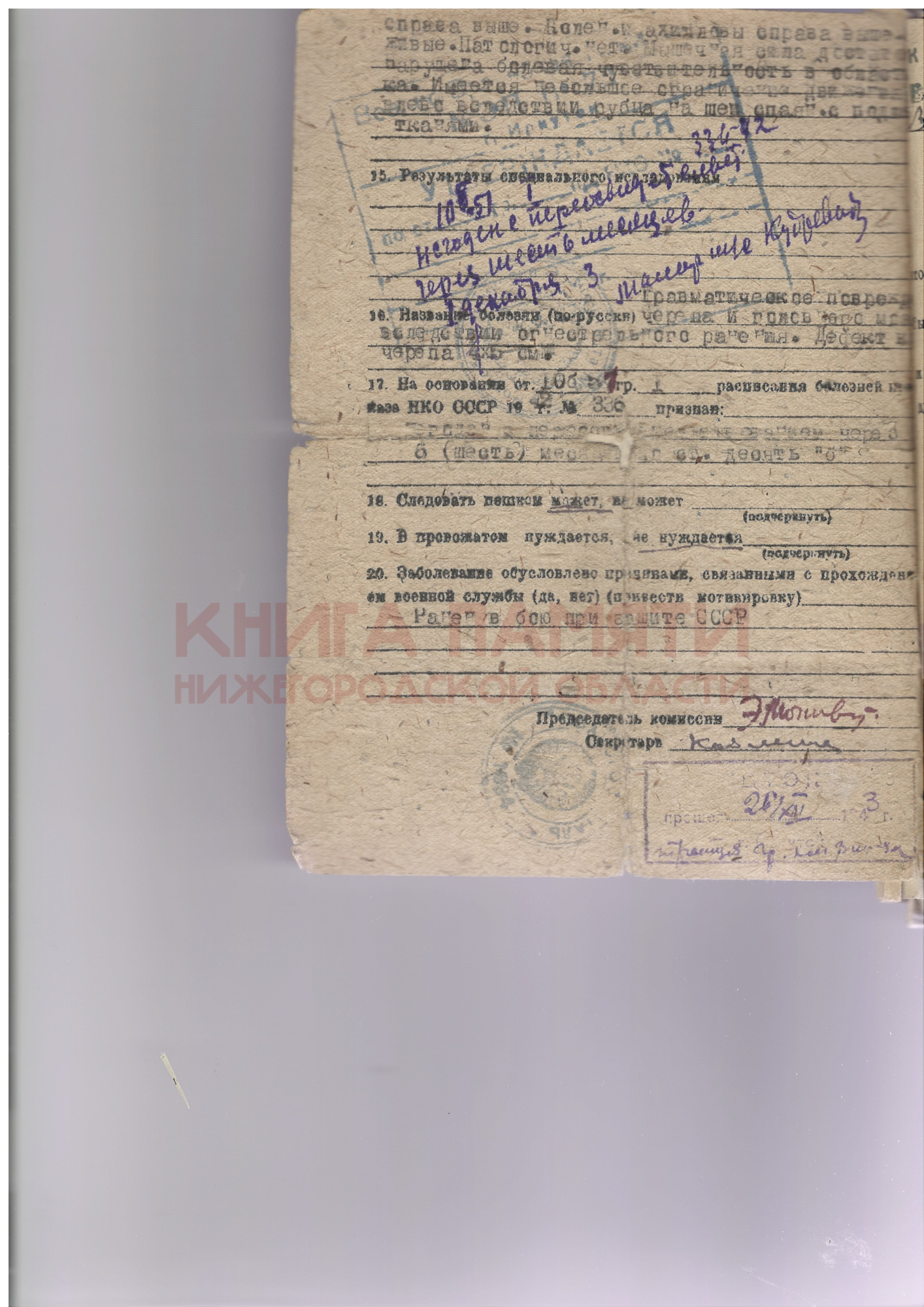 Инвалид ВОВ 3 группы. Находился на Иизлечении ЭГ2963, ЭГ 2386. Проживал в с. Ореховец Дивеевского района. Умер 20.04.1997г.