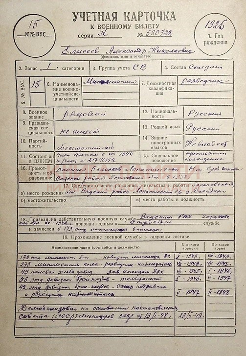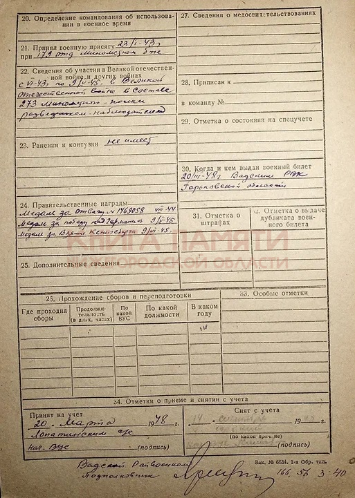 Демобилизован 23.02.1948 г.