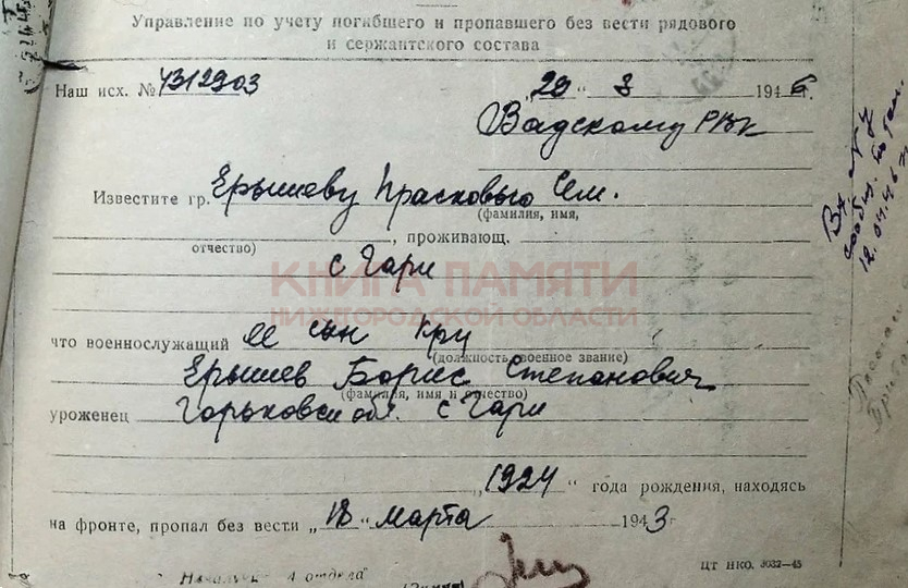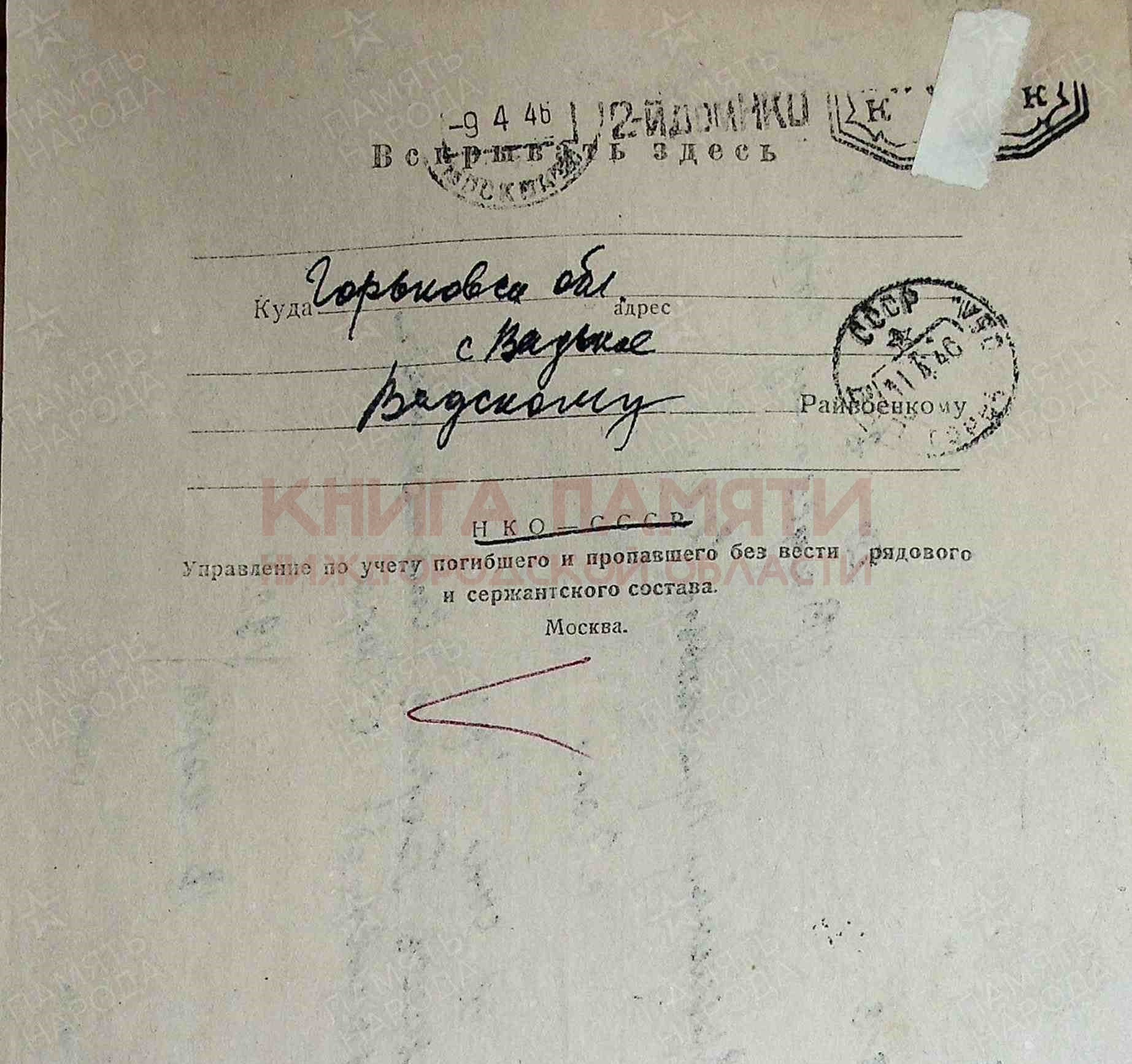 Горьковская обл., Вадский р-н, с. Гари; Украинская ССР, Харьковская обл.