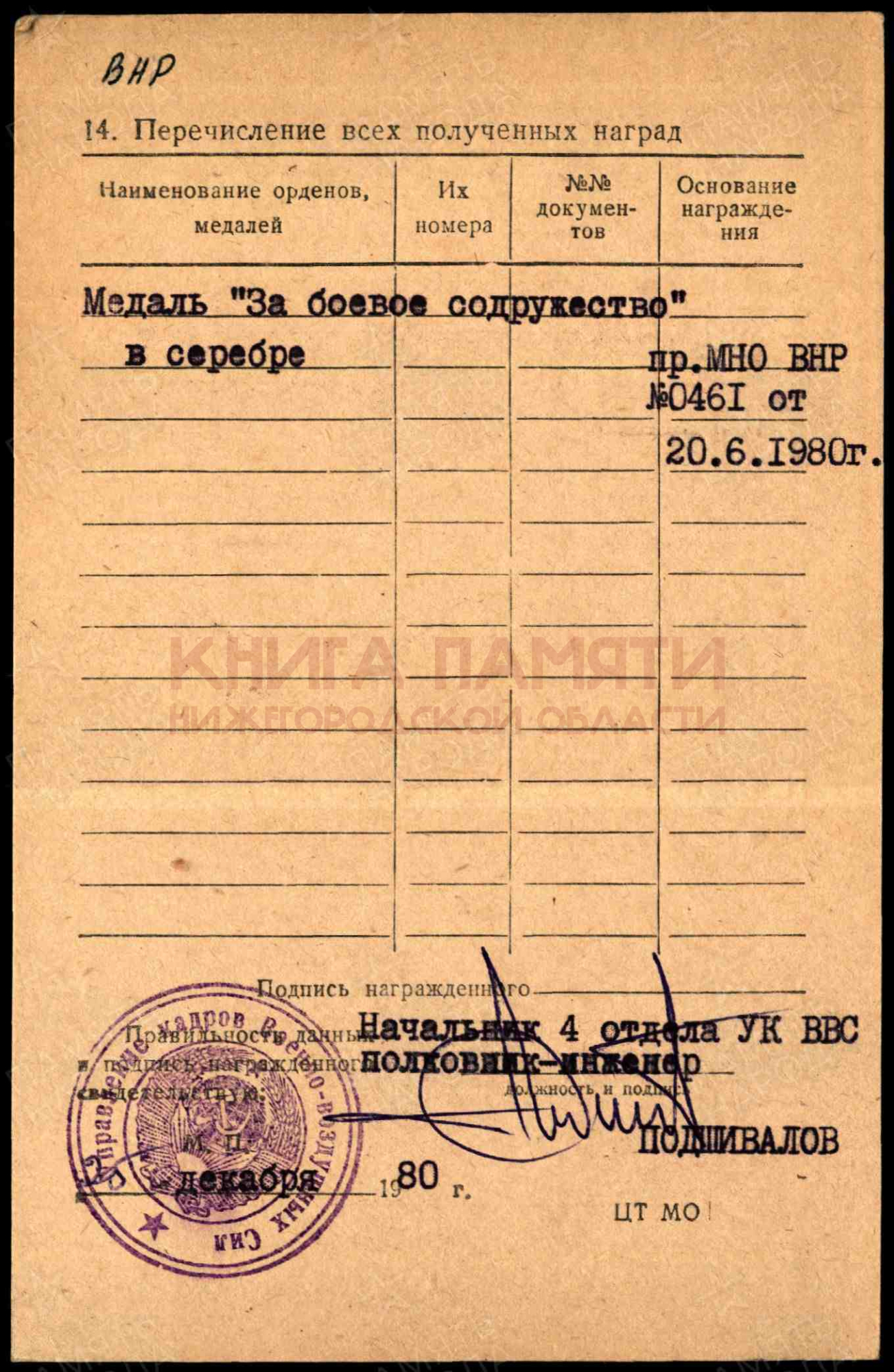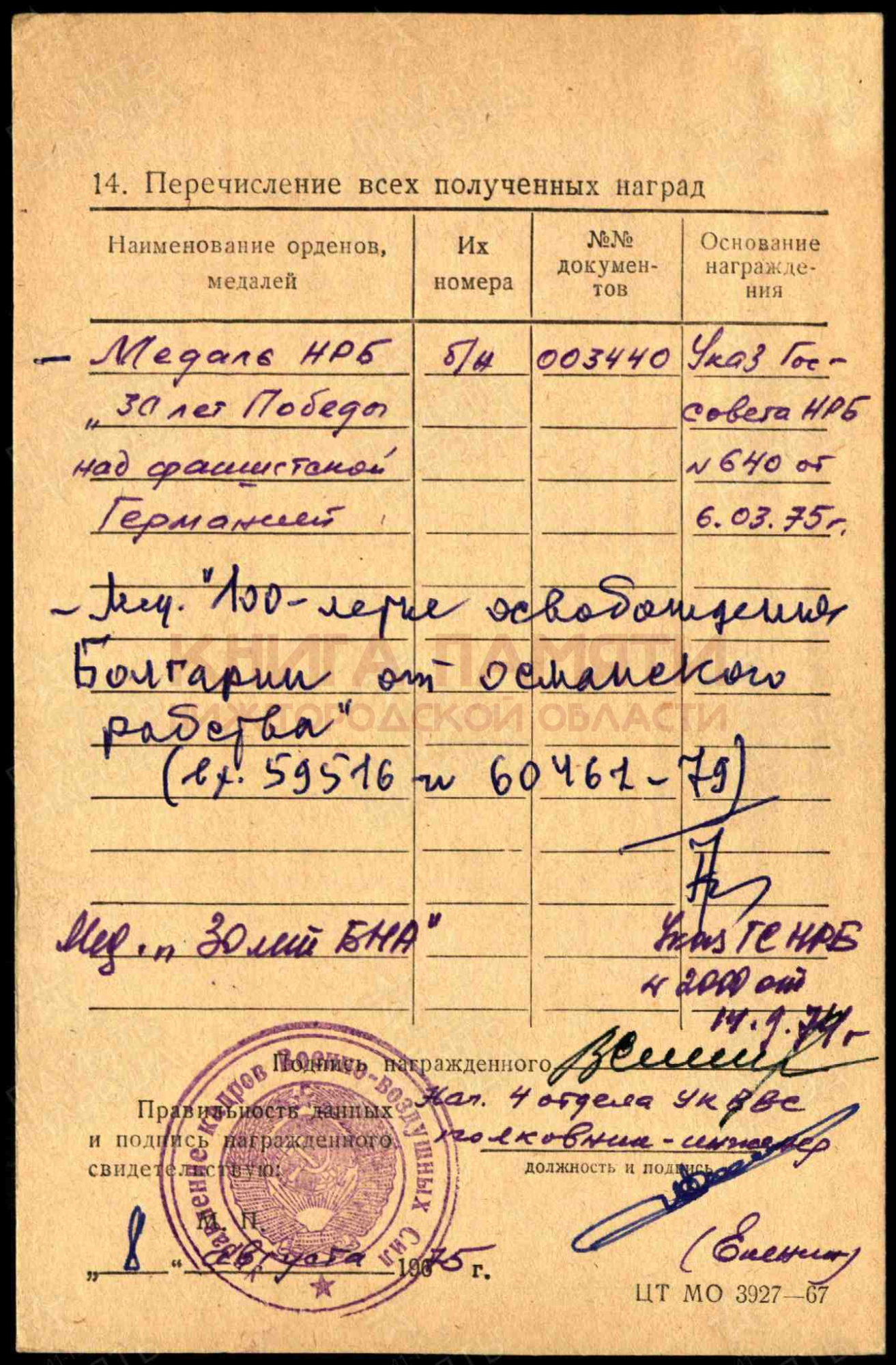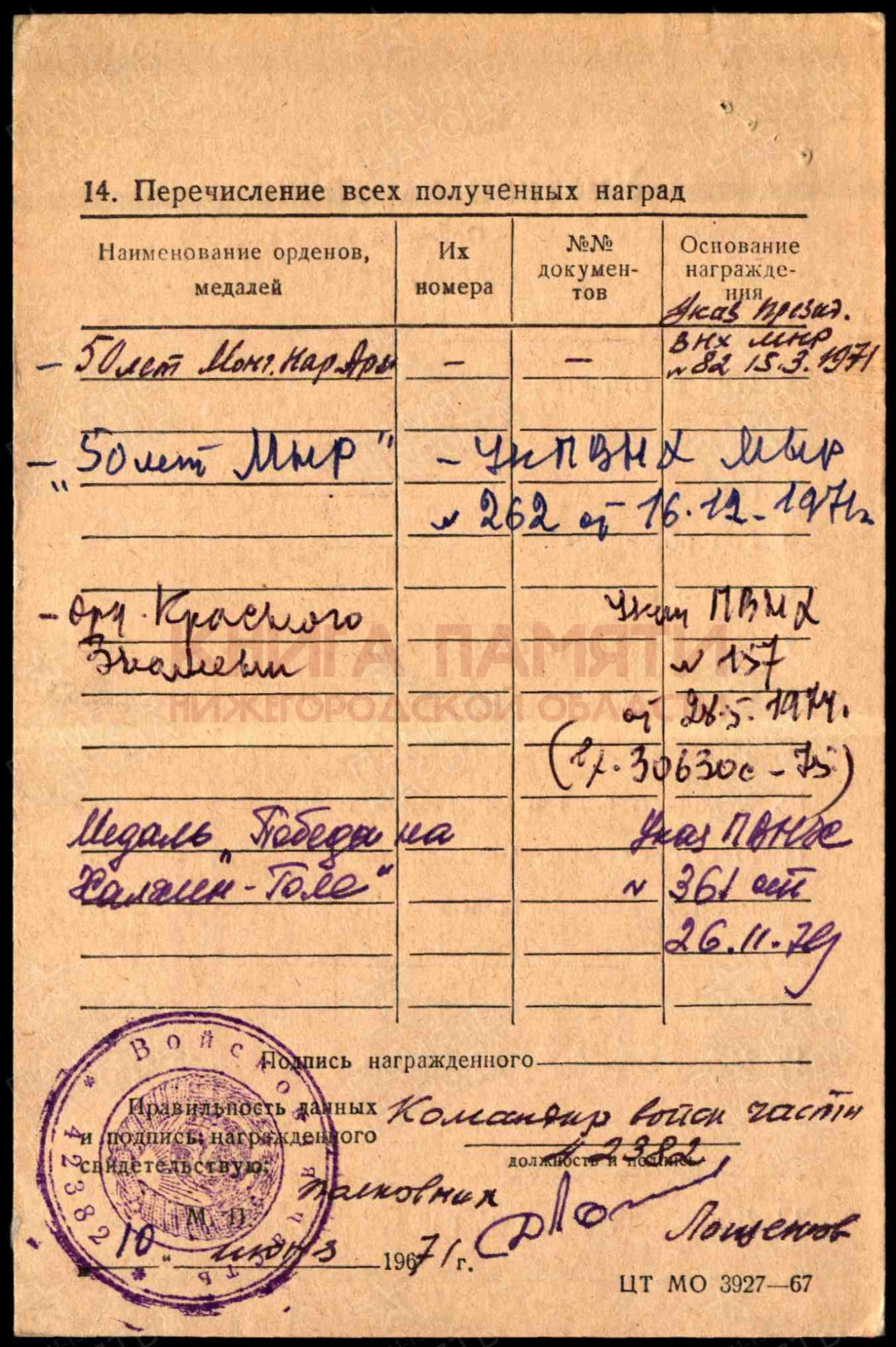 Дата окончания службы 23.09.1981 г. Умер 19.03.1986 г.