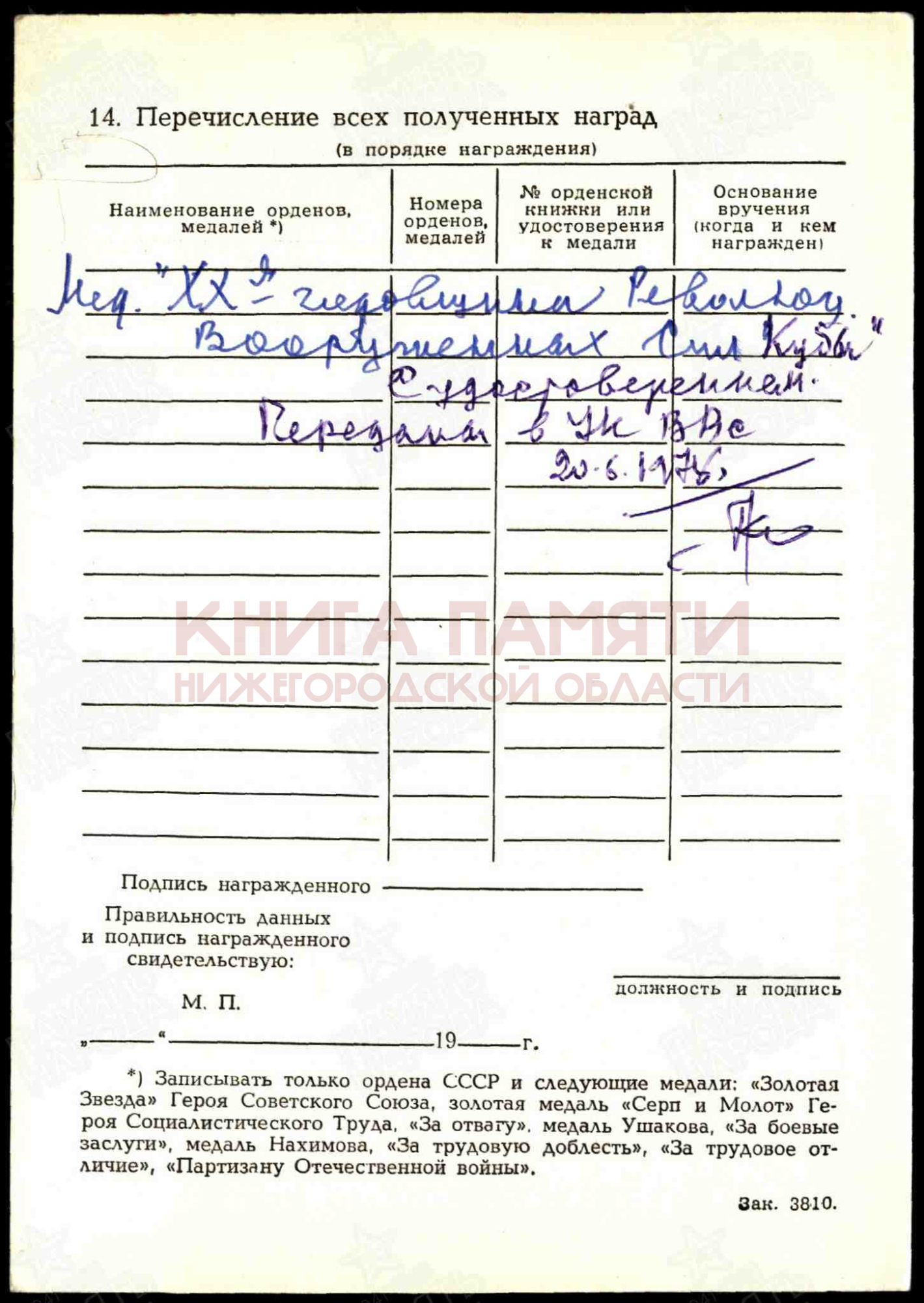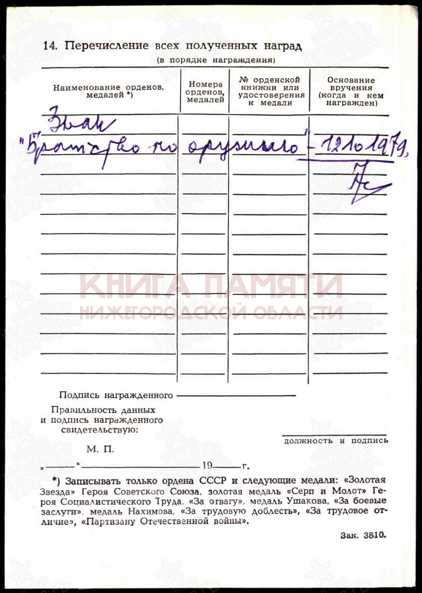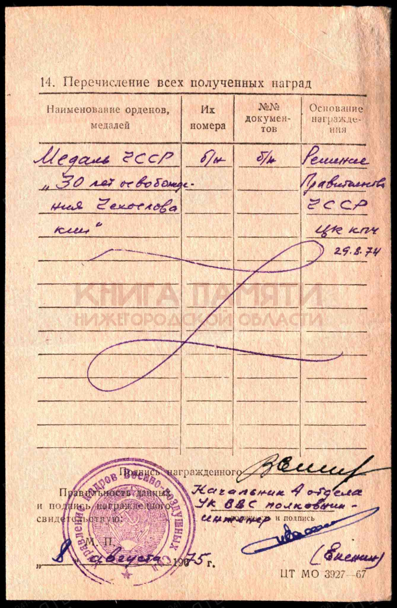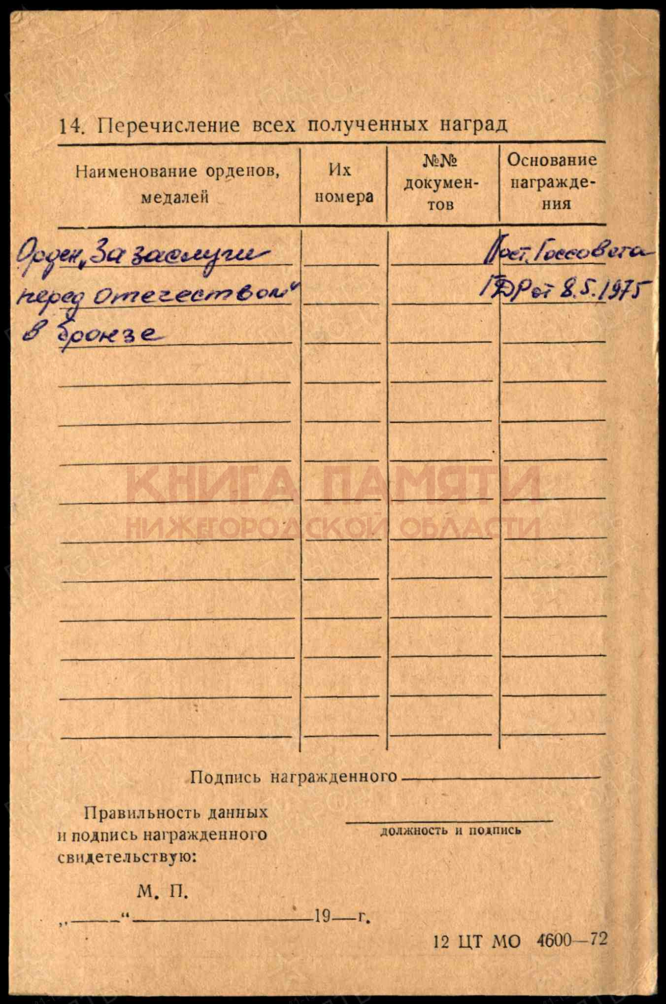 Дата окончания службы 23.09.1981 г. Умер 19.03.1986 г.