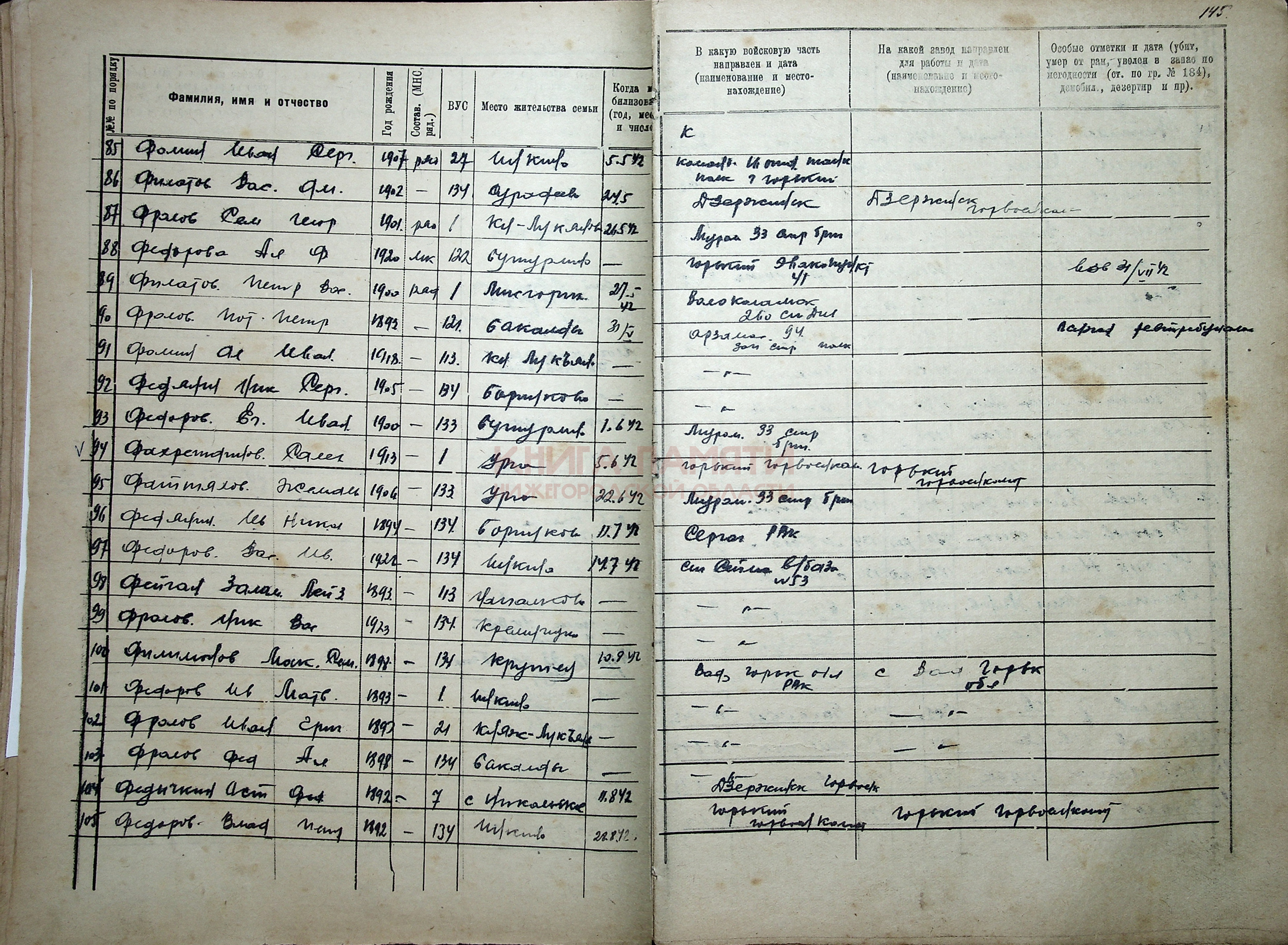 ВУС 131,категория запаса 1,беспартийный, образование 3 класса