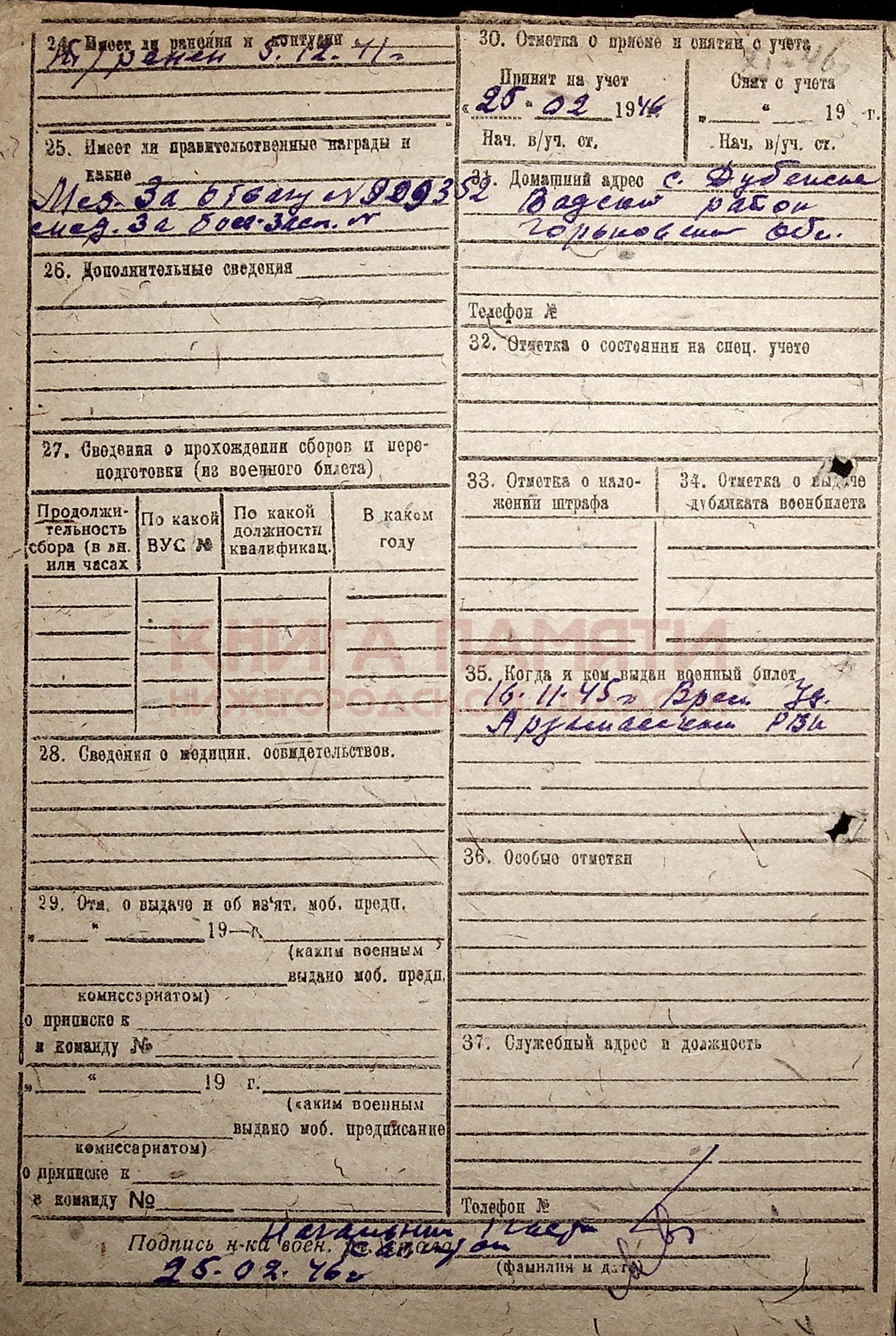 Демобилизован в 1945 г