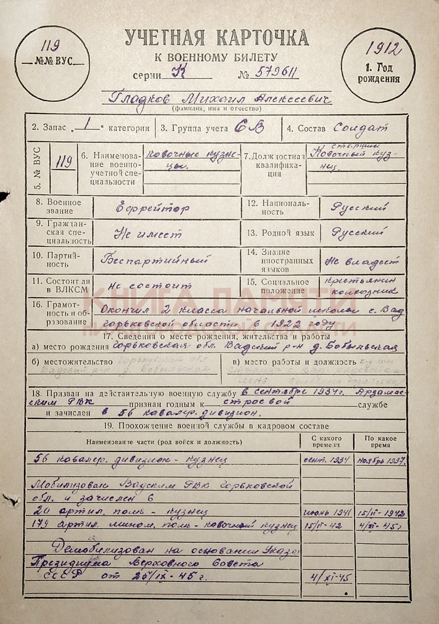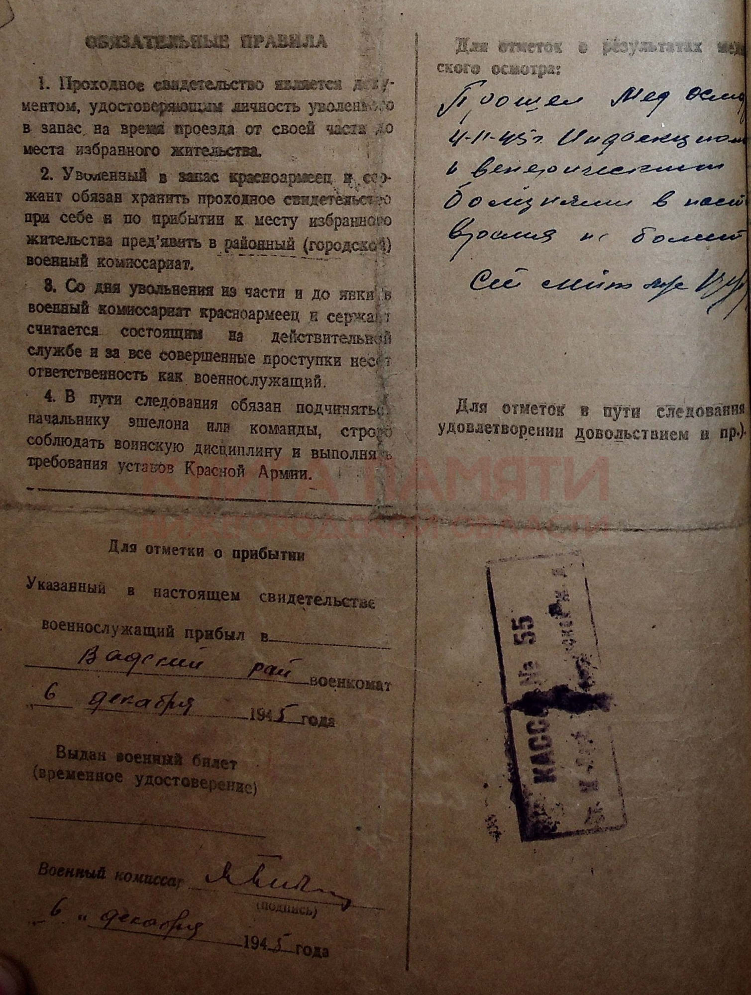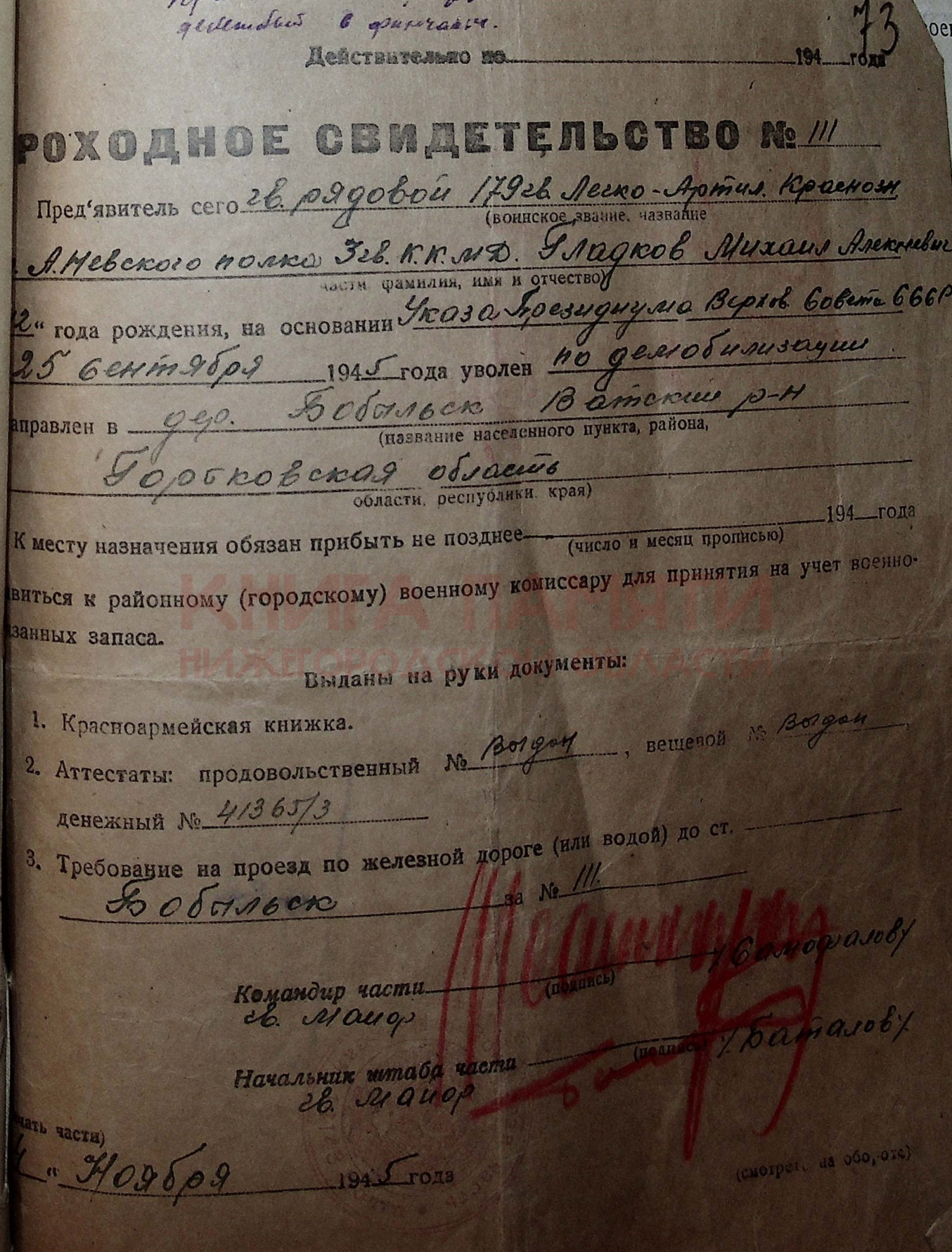 Демобилизован 25.09.1945