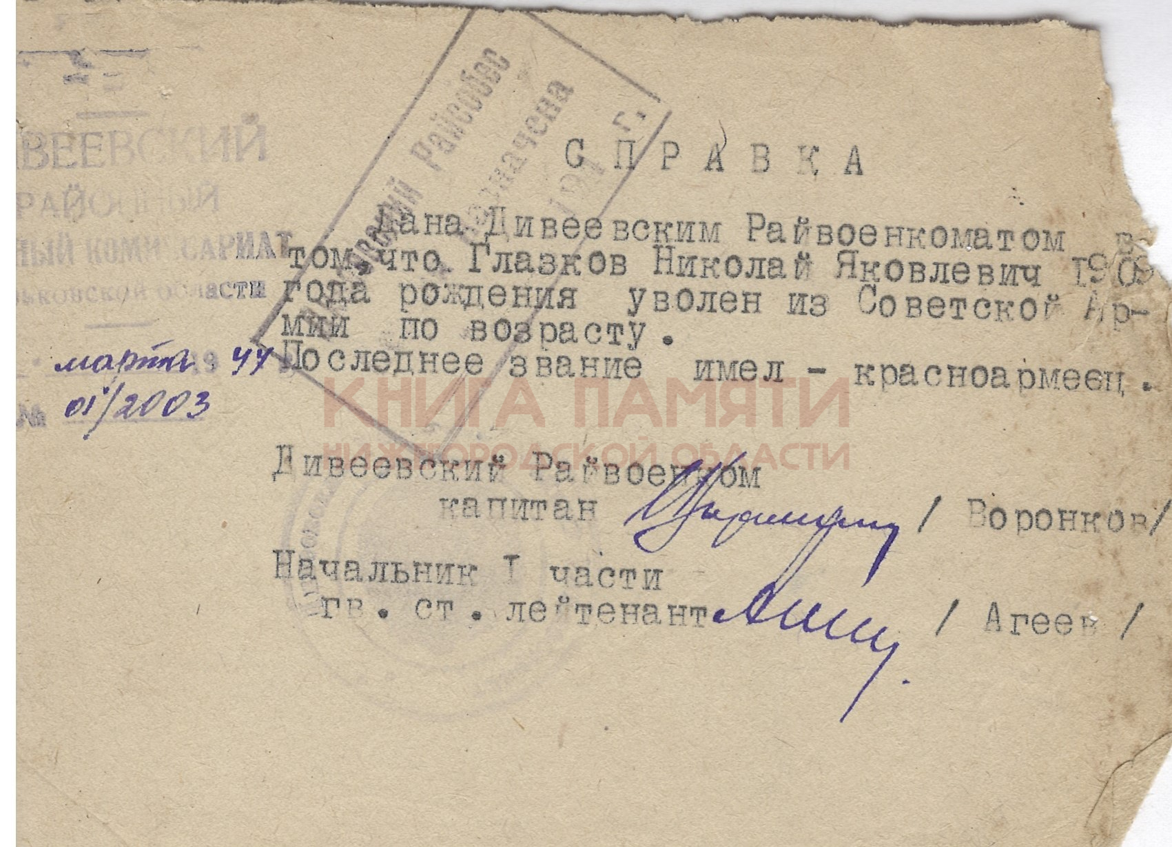 Инвалид ВОВ 2 группы,контузия на фронте.Проживал в п.Сатис. Умер 09.11.1960