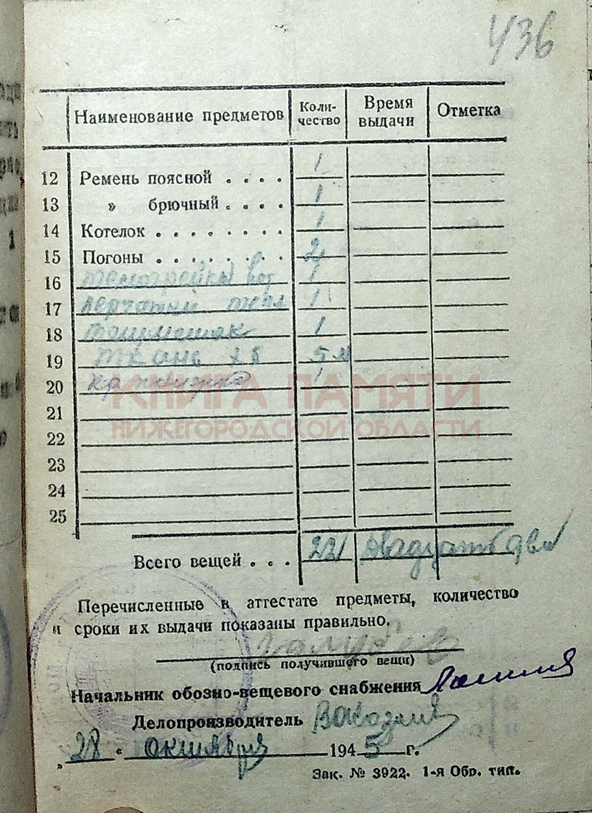 Медаль «За боевые заслуги» (2)Медаль «За оборону Москвы» (2)Медаль «За победу над Германией в Великой Отечественной войне 1941–1945 гг.»Медаль «За победу над Японией»