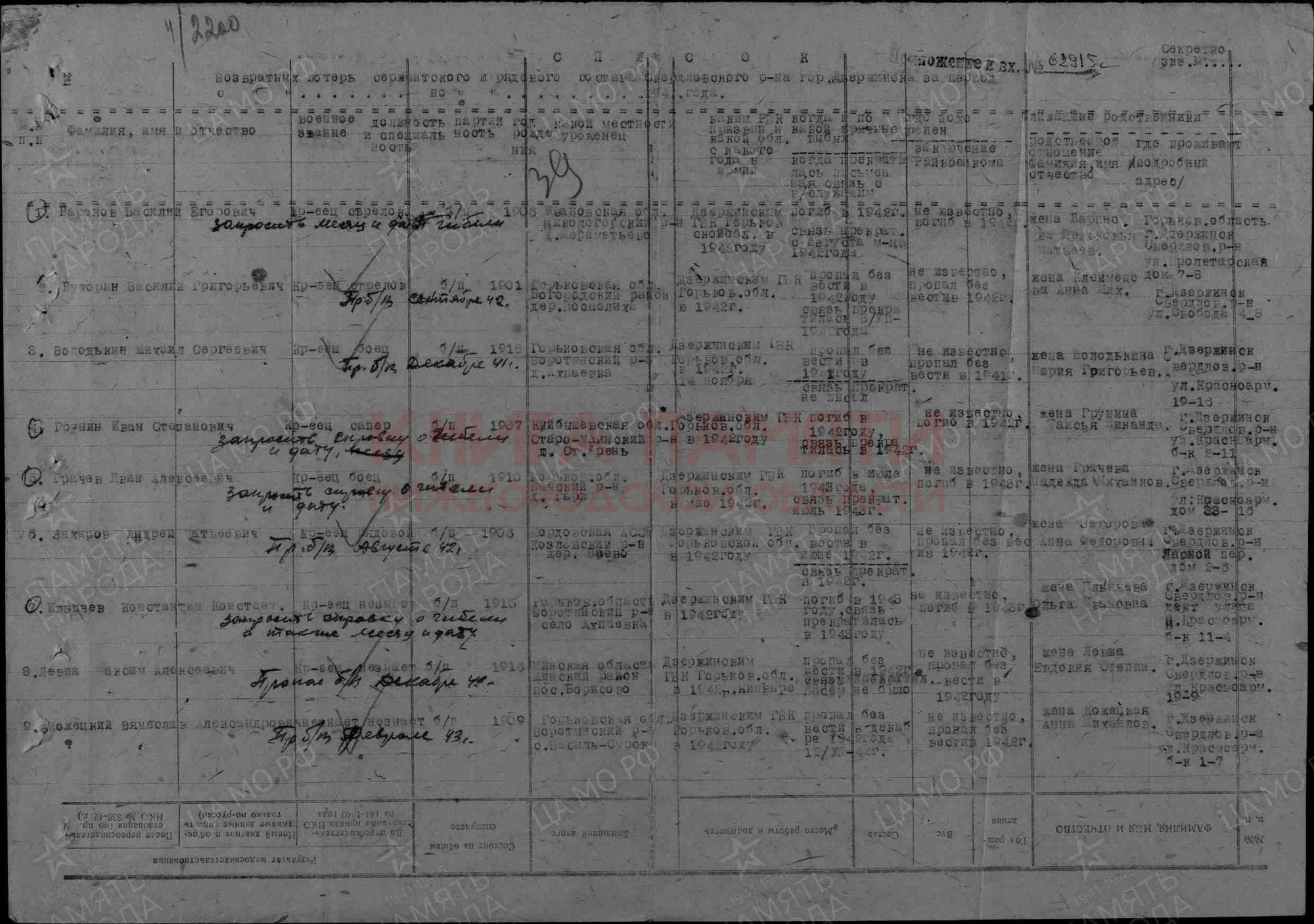 Место захоронения: Смоленская обл., Думиничский р-н, д. Чище, юго-западнее, 1 км