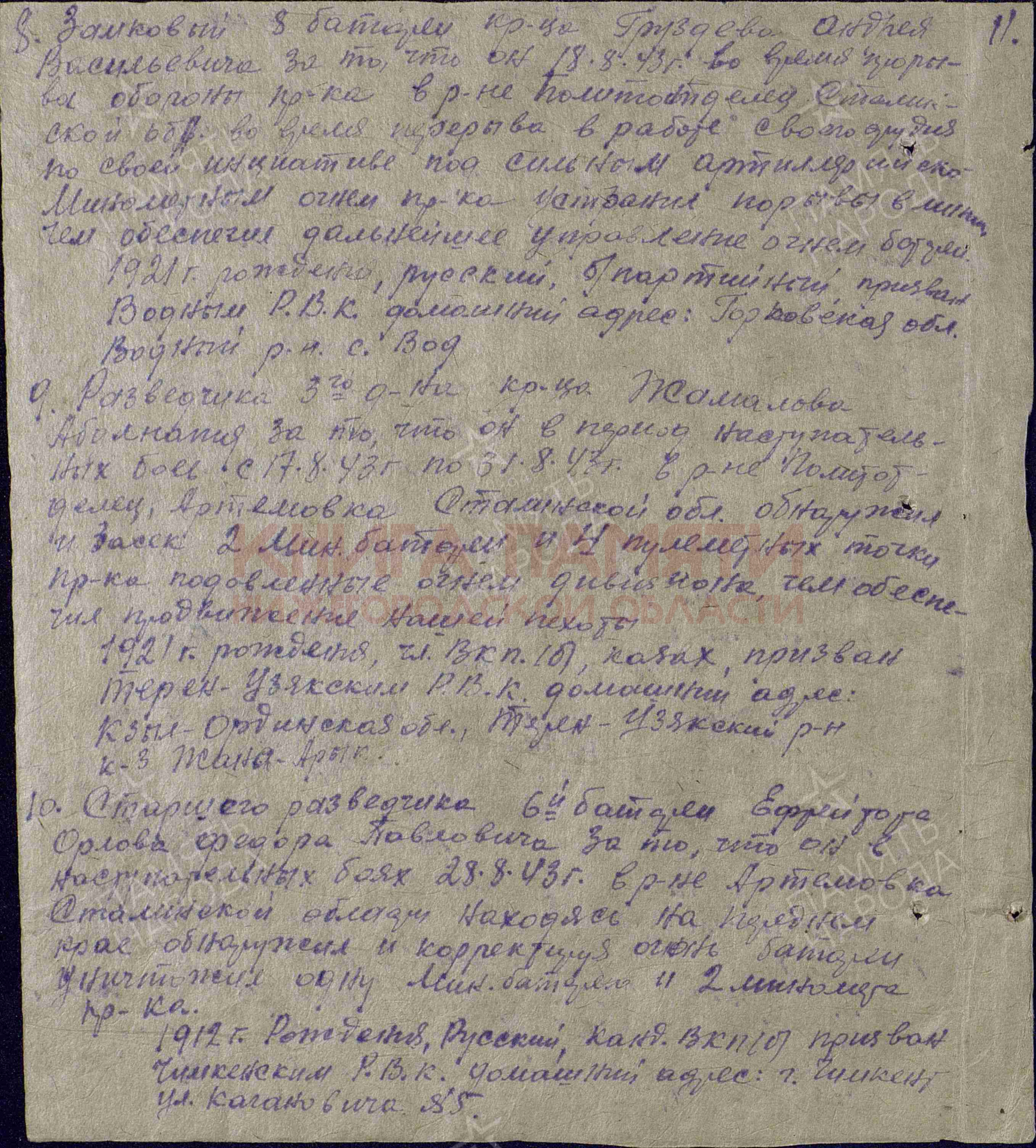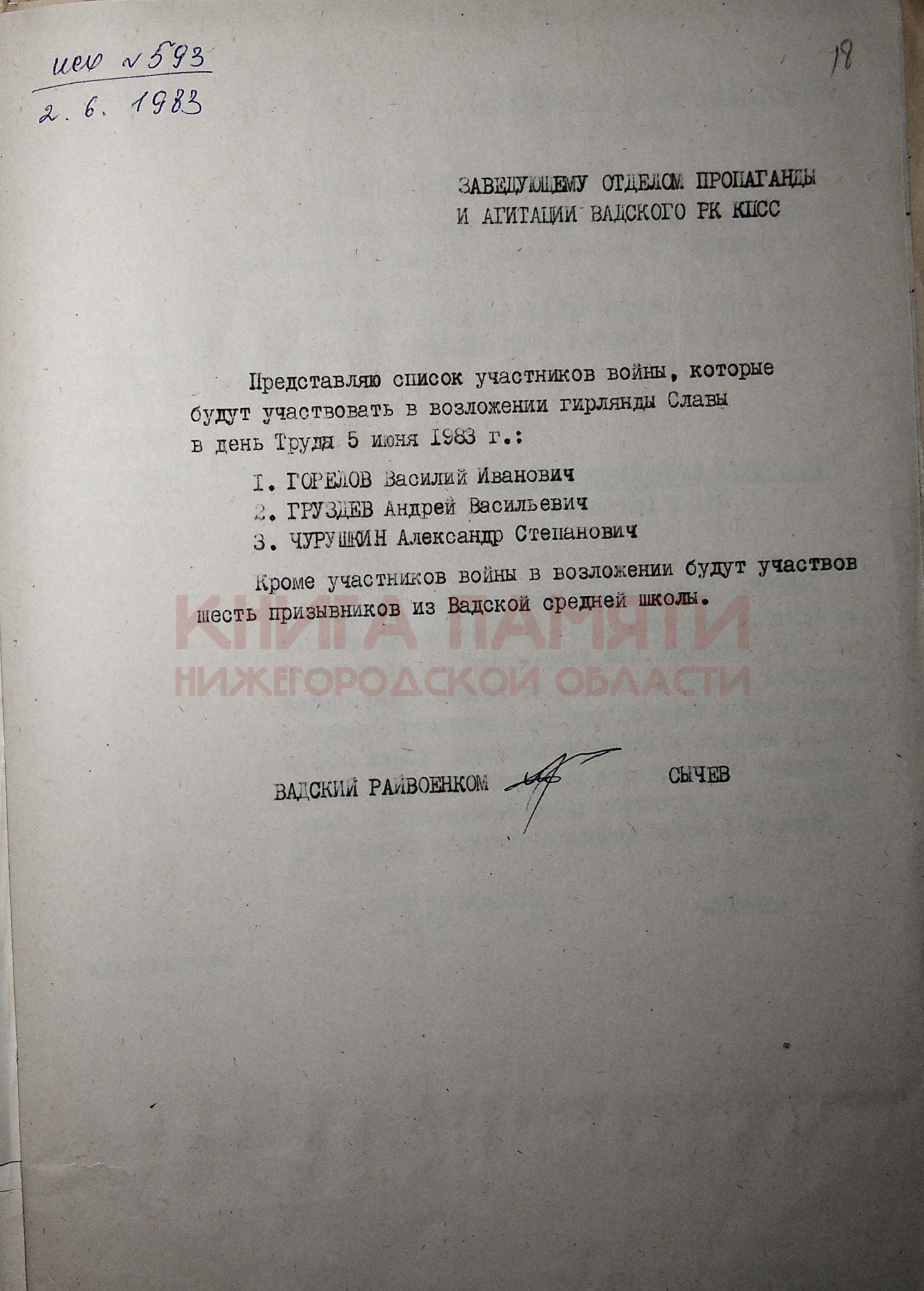 А разве забыть ему тот смертельный бой под городом Великие Луки, что в Белорусии. Немцы наступали, не давая никакой передышки нашим бойцам. В бой бросили всю бронированную технику: танки, самоходки. В этом бою особенно отличился командир орудия старший сержант Груздев, который подбил несколько немецких танков. За этот бой он был награжден первым орденом Красной Звезды.