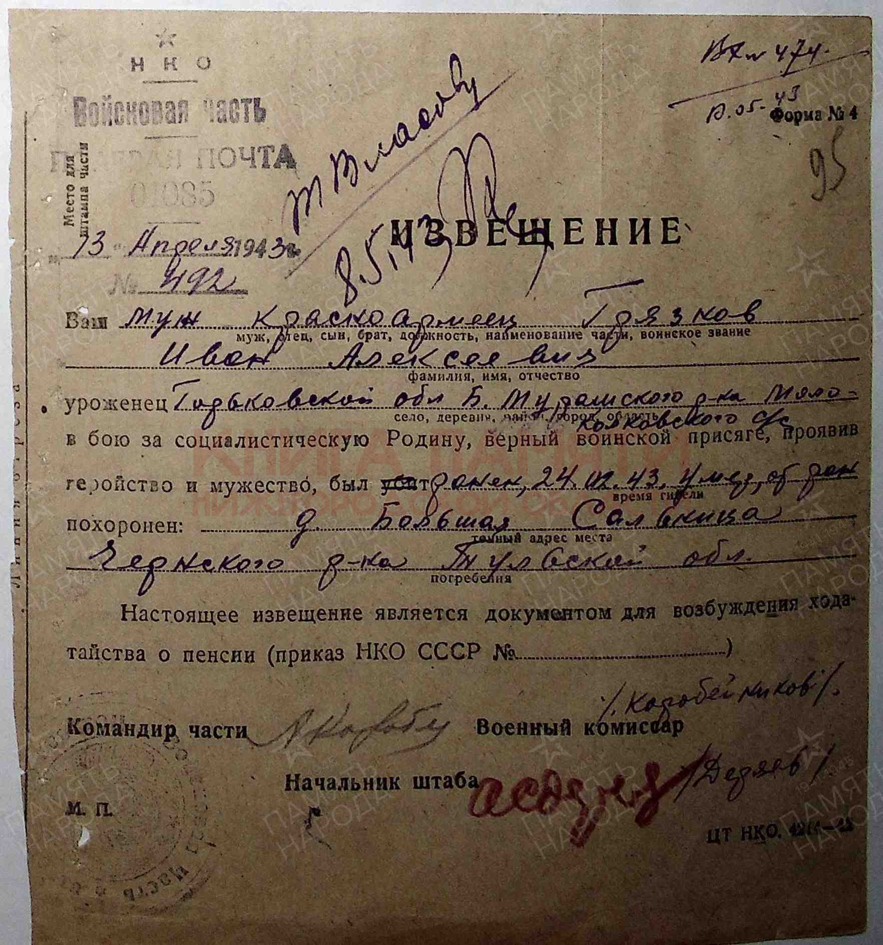 Похоронен в д. Большая Сольница Чернского р-на Тульской обл.