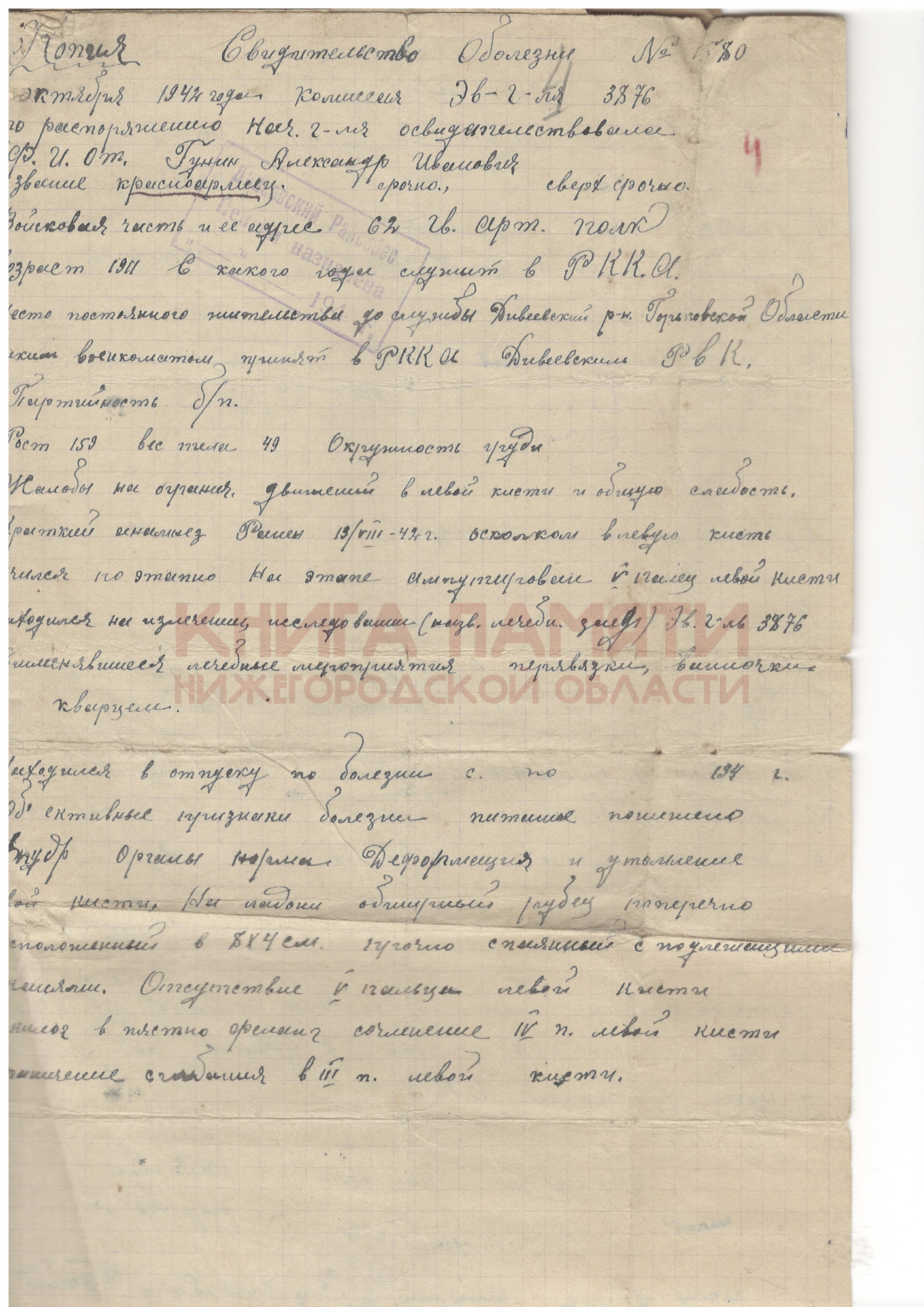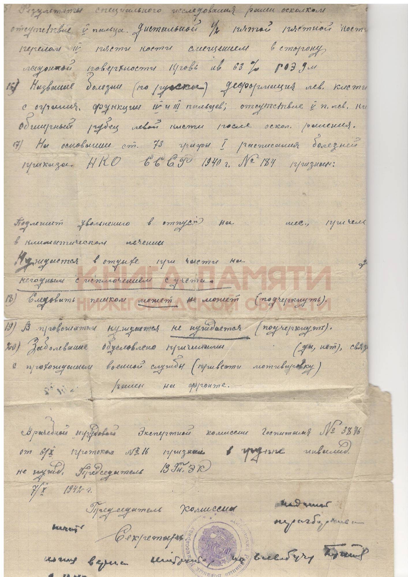 Инвалид ВОВ 3 группы, осколочное ранение в левую руку,ампутированы 5 пальцев, находился на излечении в ЭГ 3876. Проживал д.Полупочинки Дивеевского района. Умер 18.10.1969