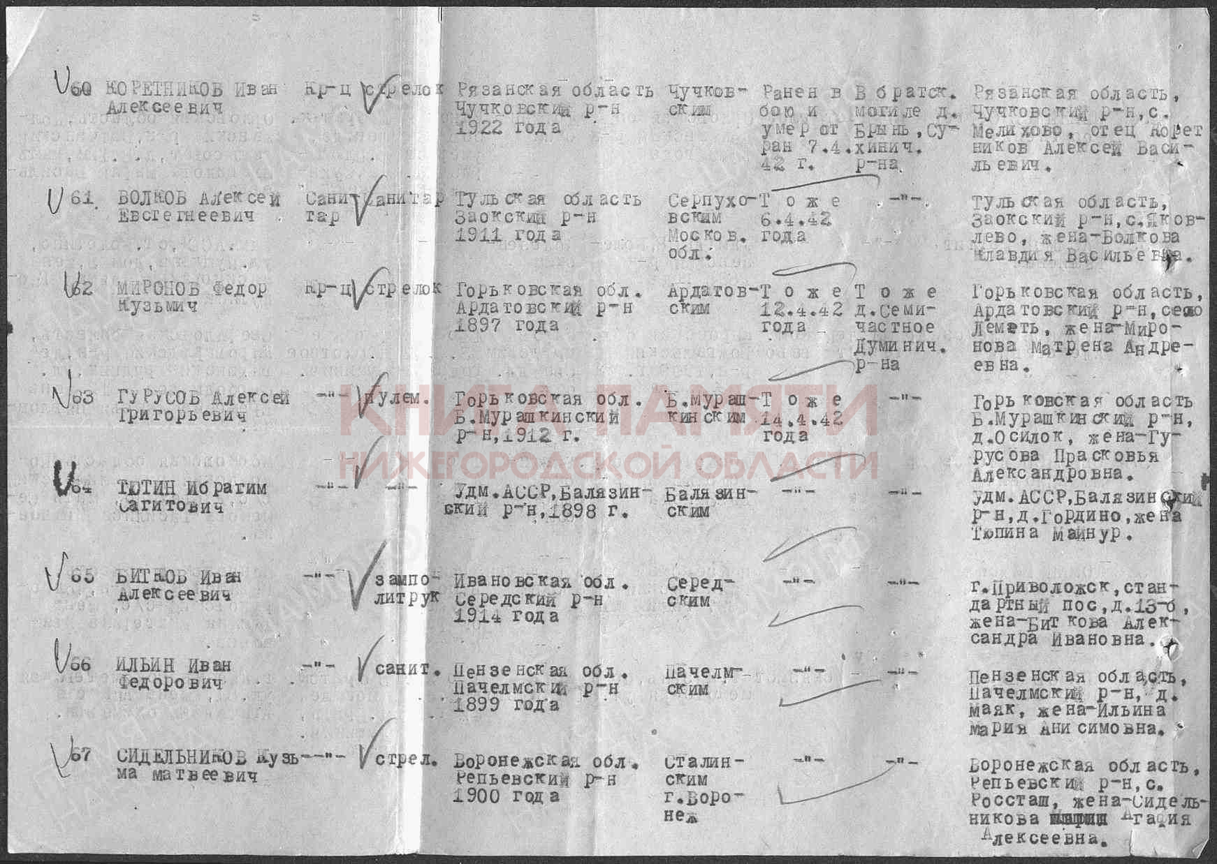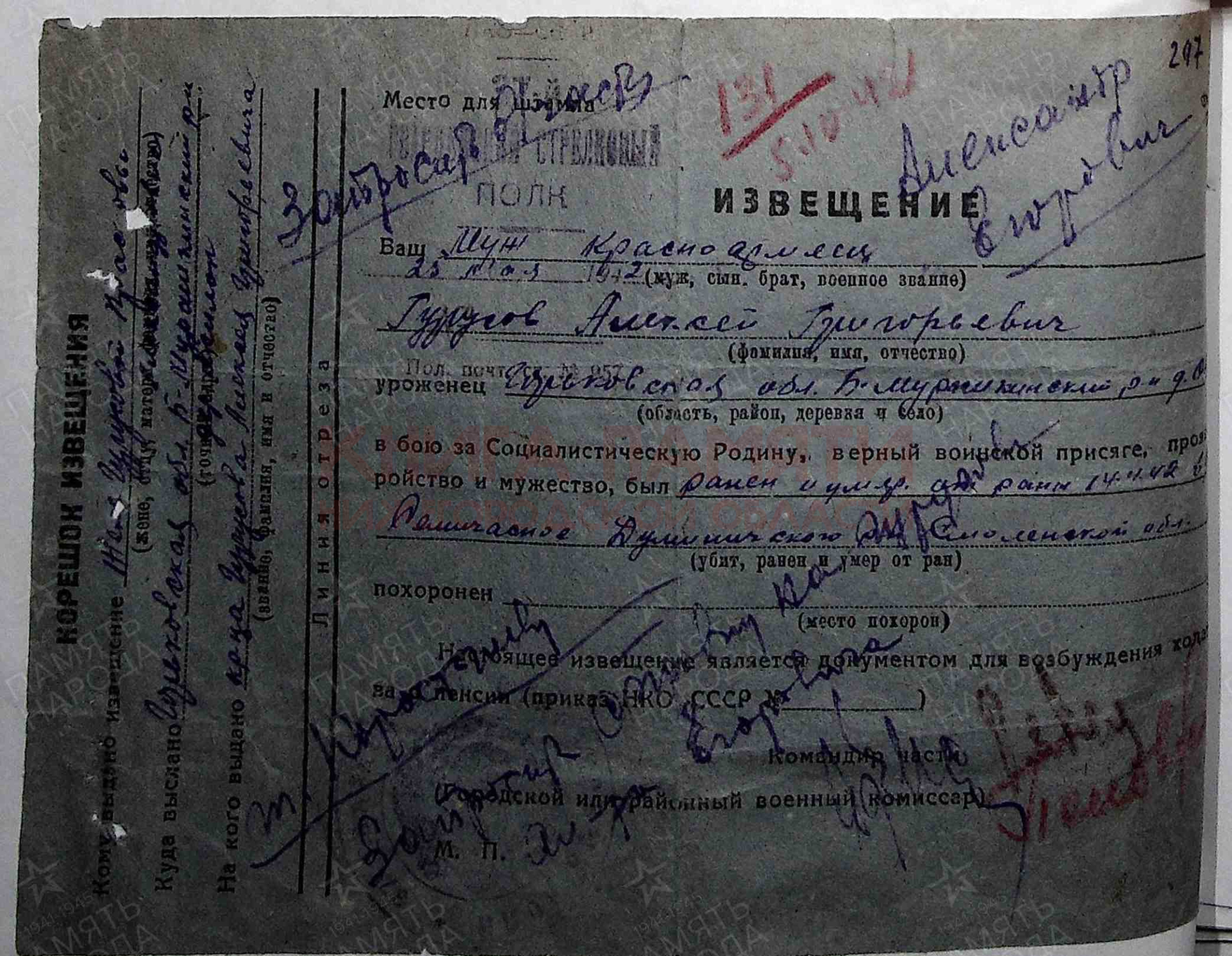 Смоленская обл., Думиничский р-н, Семичасное ; Умер от ран 14.04. 1942.