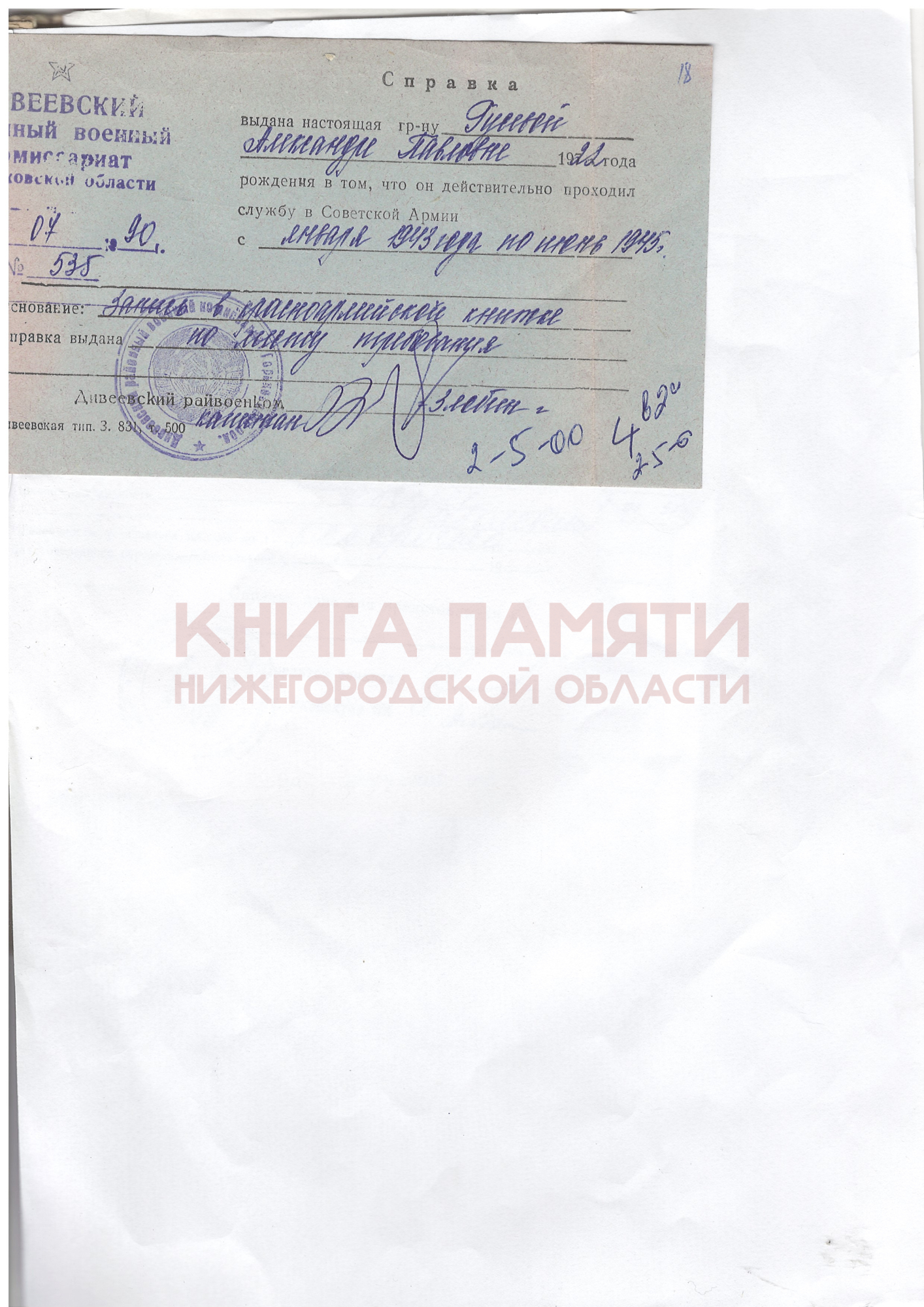 Демобилизована __.06.1945г. Проживала в п.Сатис Дивеевского района, работала в совхозе "Вперед". Умерла 26.10.2006.