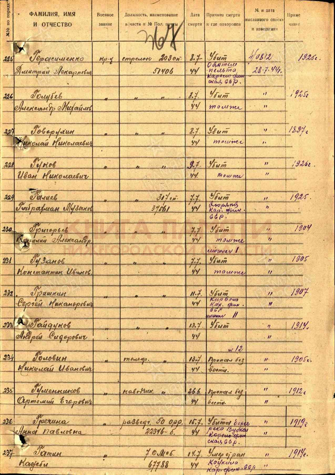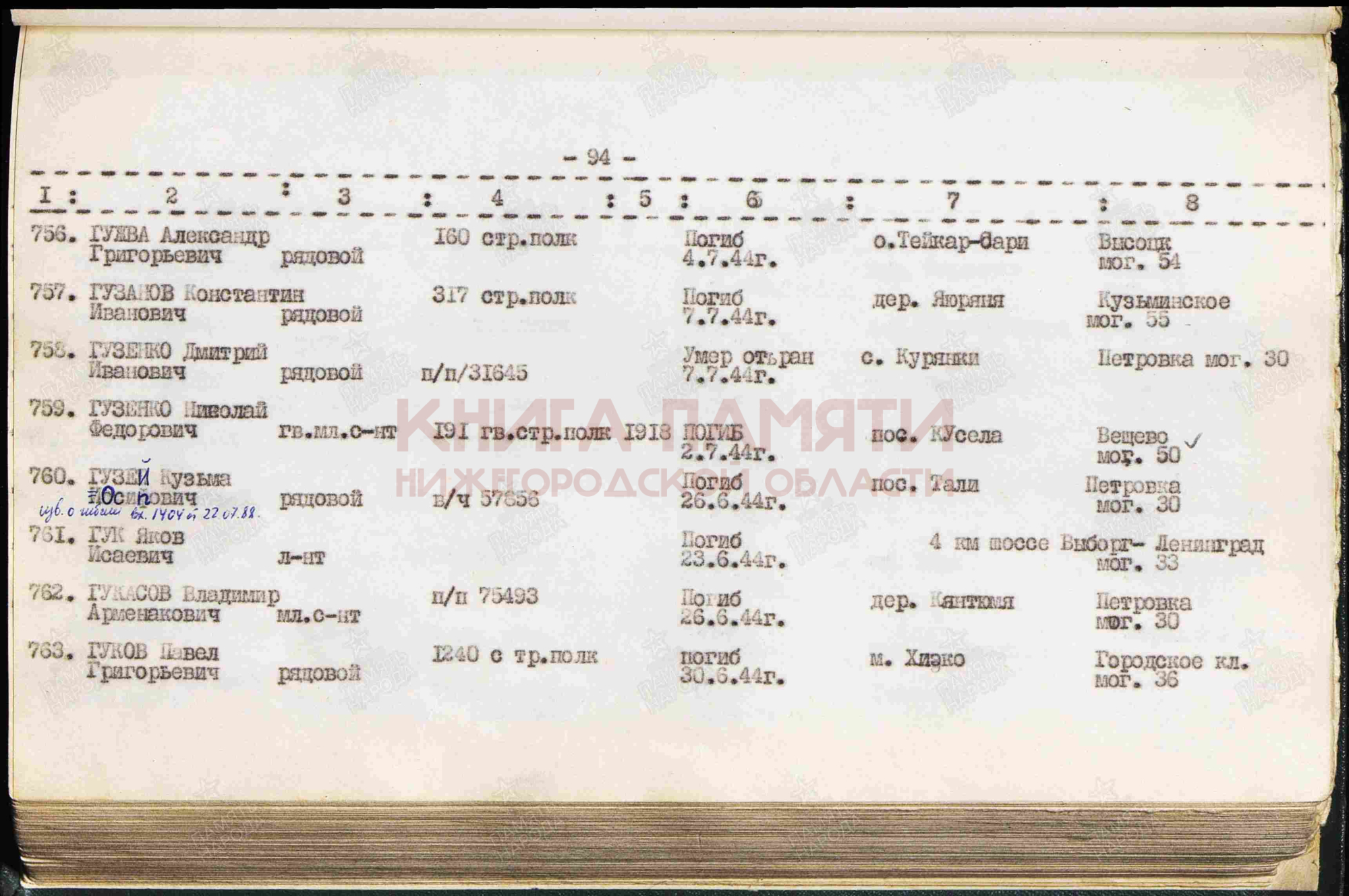 Похоронен в Карельская АССР, д. Япоряпа ; Погиб в бою 7.07.1944.