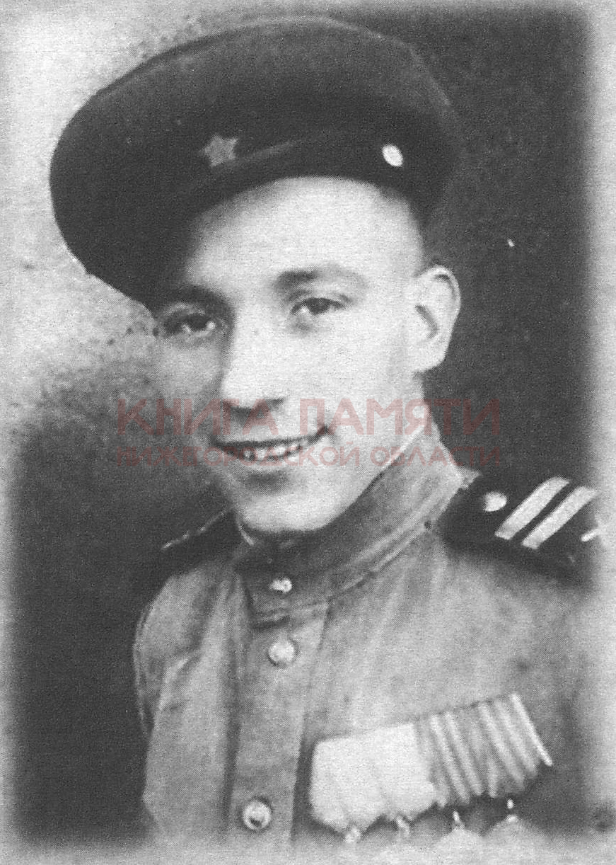 Родился 08.12.1924 г. в г. Богородске Нижегородской обл. Учился в школе № 8. В 1942 г. поступил в артиллерийское училище, где проучился полгода. После окончания курсов, в июле 1943 г. был отправлен на фронт, на Курскую дугу. Ходил с разведчиками в тыл врага, его задачей было выявление координат вражеской техники и скопления войск немцев. За освобождение Курска и Орла получил первую медаль «За отвагу».