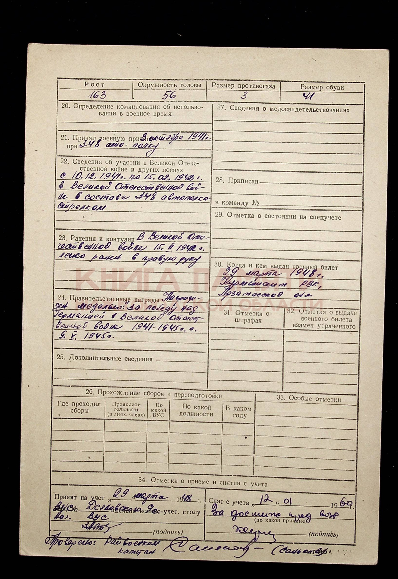 Жил в д. Б.Ртишево, окончил 3 класса, гражданская специальность - путеец, женат. После войны работал в колхозе "Путь к коммунизму".