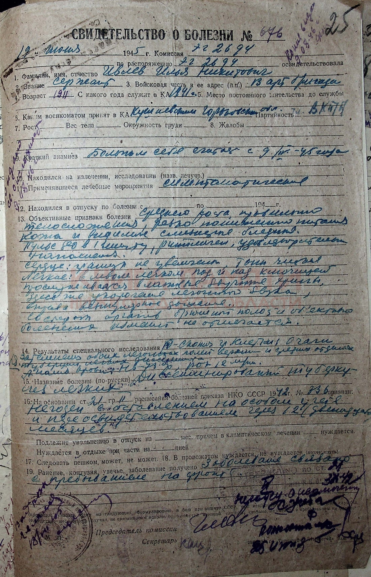 Признан негодным с оставлением на особом учете от 19.06.1945 г.
