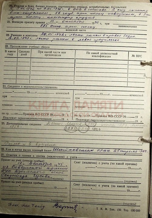 В 1942 получил ранени в правое бедро, в 1943 ранение в левой предплечье.