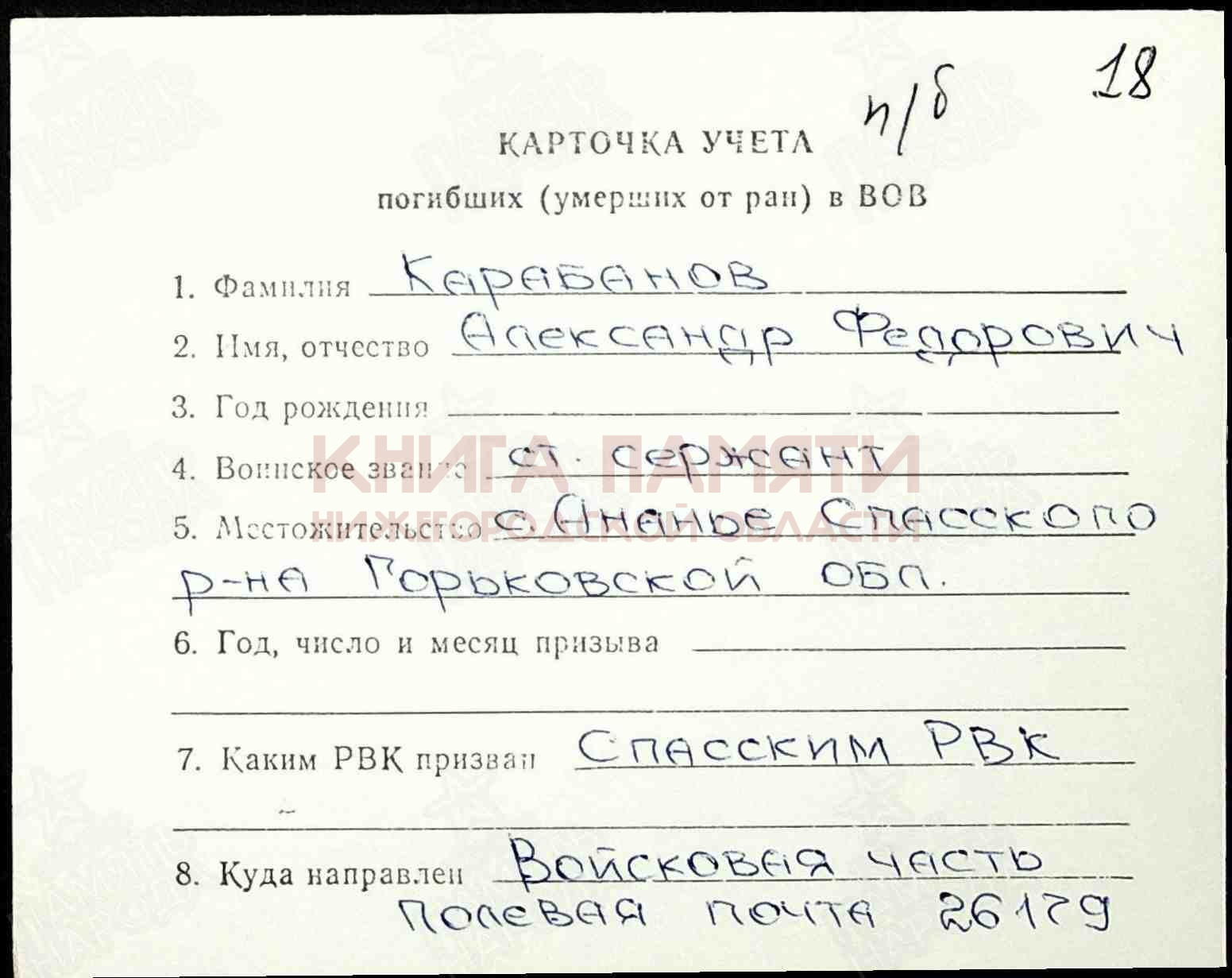 Спасский РВК Горьковской обл.