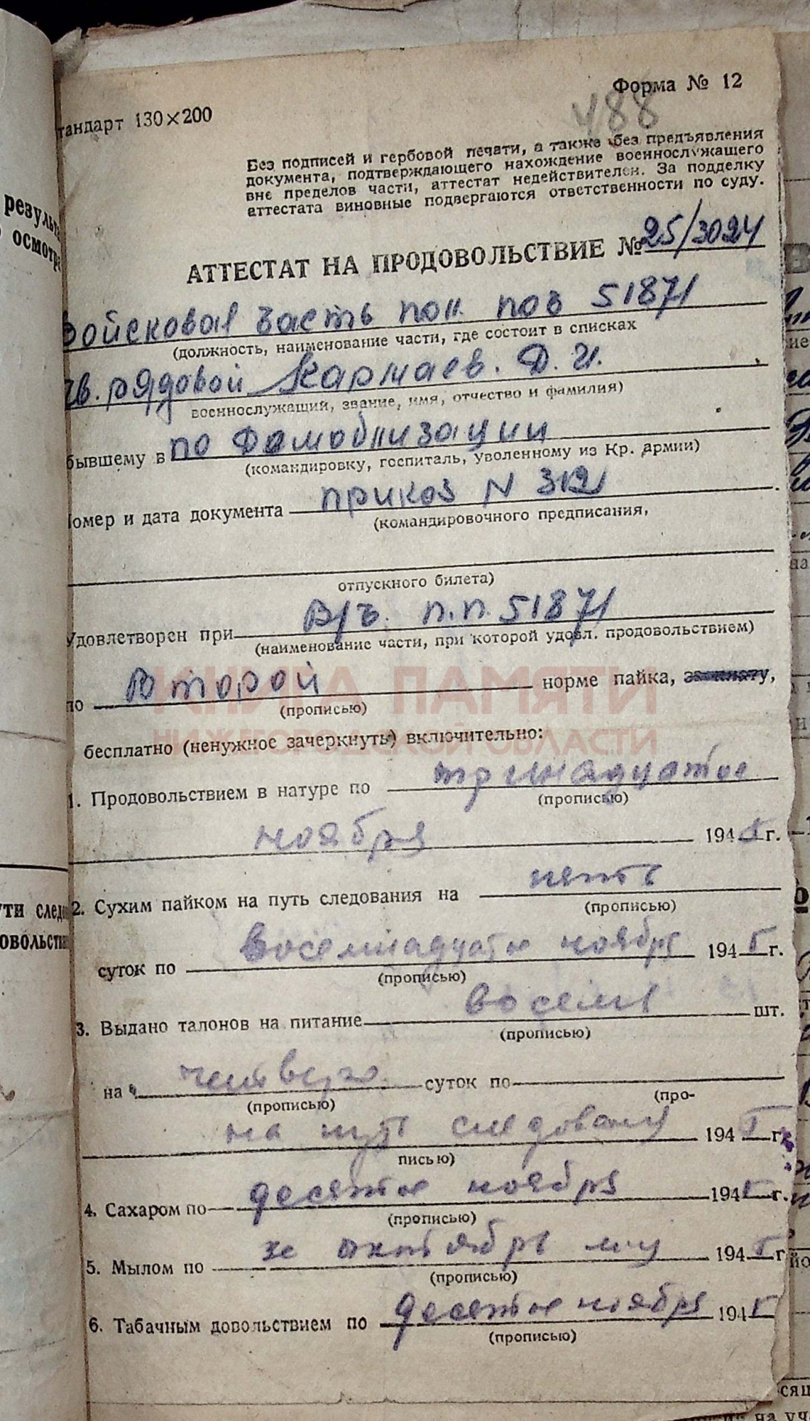 демобилизован 25.09.45г.