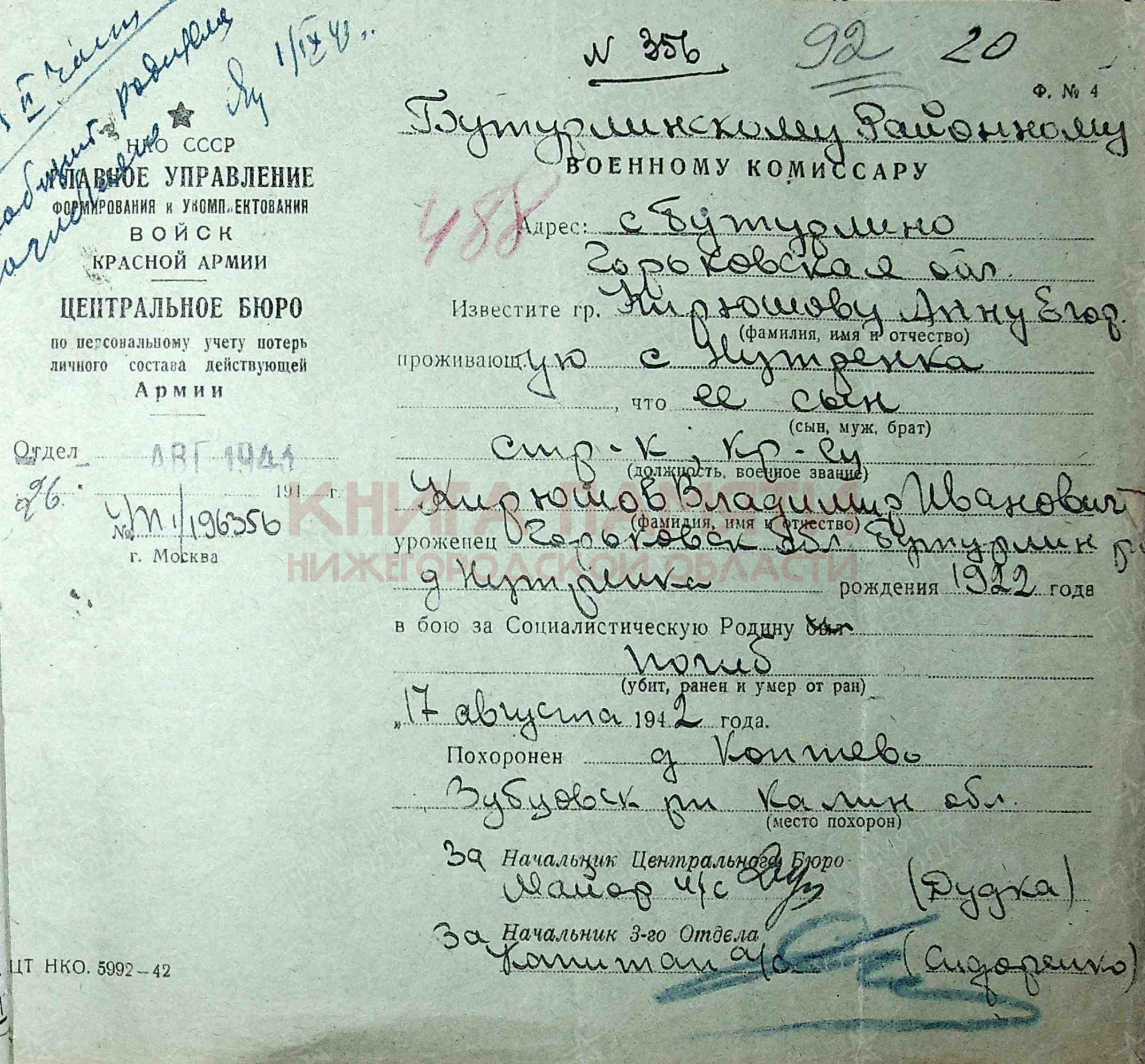 Похоронен в д. Коптево Зубцовского р-на Тверской обл.