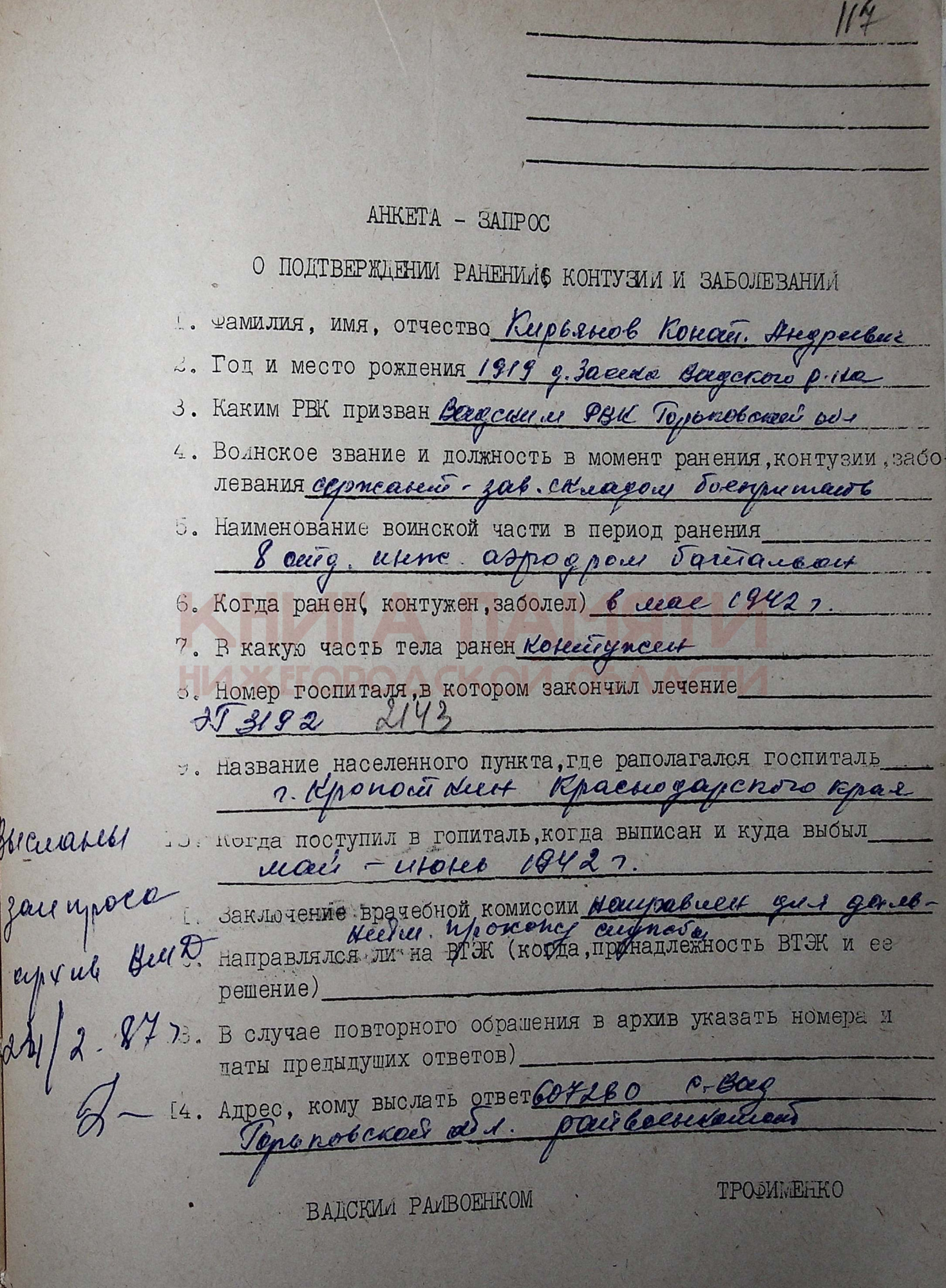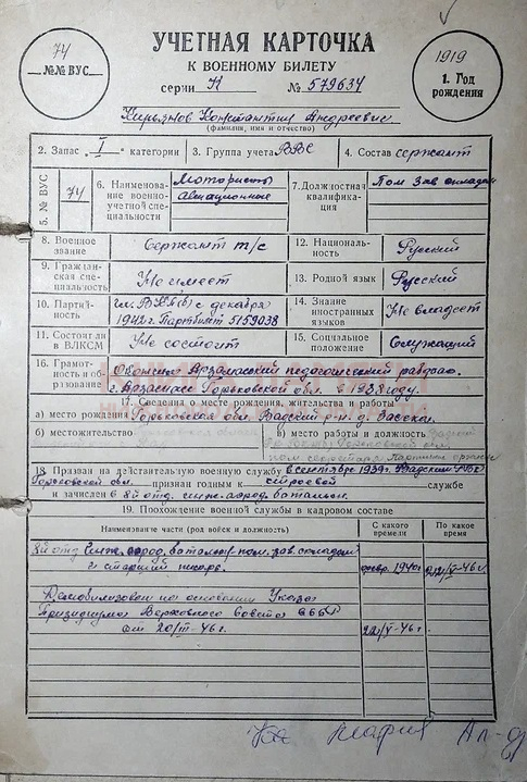 Ранен (контужен) в мае 1942, ЭГ 3192. В ЭГ с мая - июнь 1942.