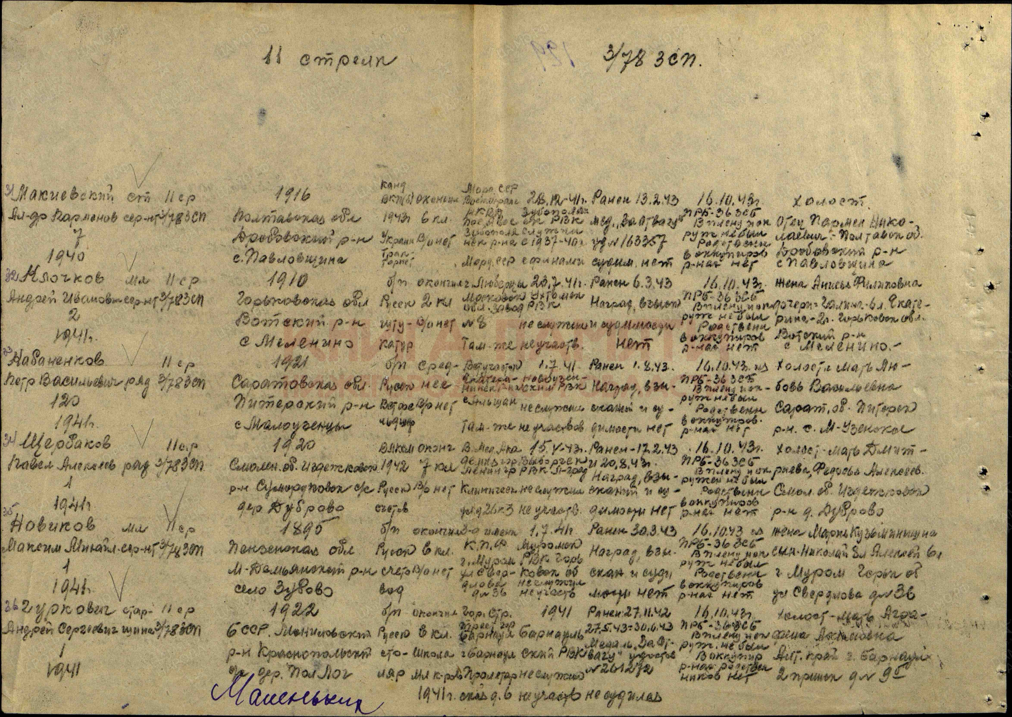 Место захоронения: Ленинградская обл., Выборгский р-н, Житковский с/с, п. Кузьминское, ж/д, 2 км, могила № 55, квадрат 35-35