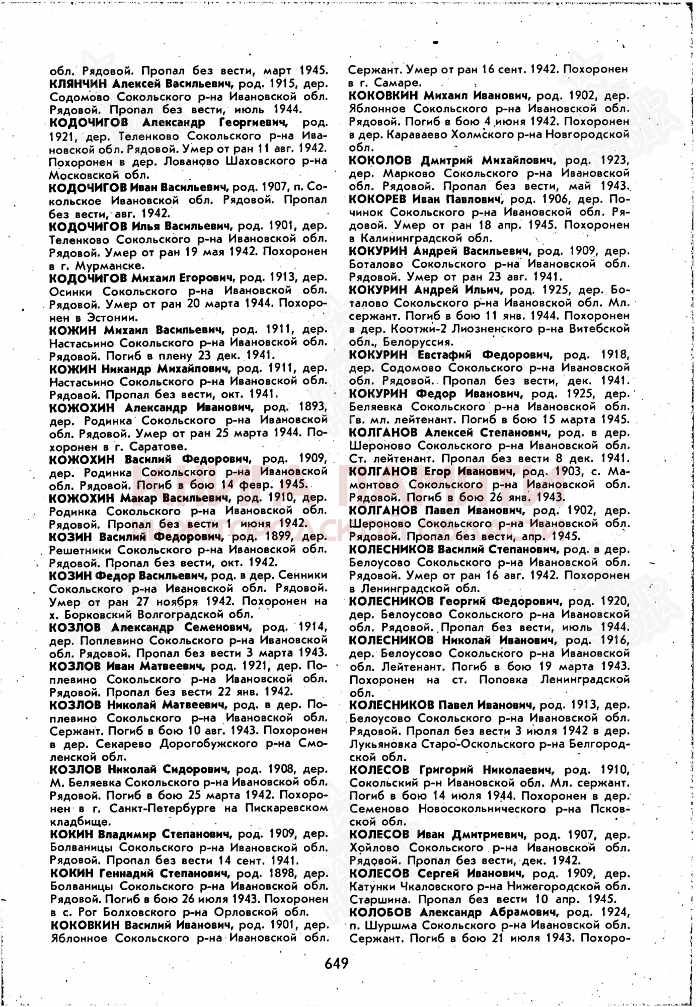 Наименование военкомата: Сокольский РВК, Ивановская обл., Сокольский р-н