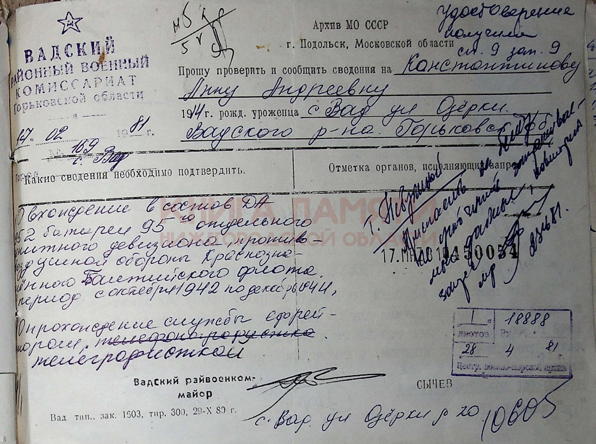 Вадский РВК, Горьковская обл., Вадский р-н